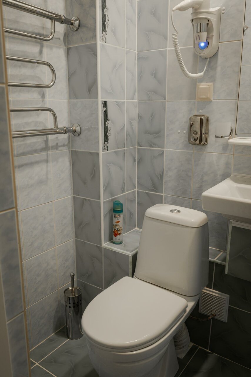 Были в Рязане с 12 на 13 августа. Забронировали 2х местный номер. Достался номер 1 на первом этаже. Сначала о плюсах: - Только расположение. 10 минут прогулочным шагом до Кремля и зоны вокруг него. На этом плюсы заканчиваются. Теперь о минусах: - Такое ощущение, что отель ‘застрял’ где-то в 90х. Линолеум допотопный, сантехника и мебель то же. Полы были не мытые. К сожалению, мы с женой забыли тапочки, думал похожу так, но после двух шагов по номеру пятки были просто ‘черные’, так и ходили в обуви. Кровать в номере была двухспальная, но, что удивительно, прикроватная тумбочка стояла только с одной стороны. С другой место было, а тумбочки не было. Кровать скрипела так, что не возможно было спать. Ночных светильников нет, только одна большая люстра с 3 лампочками под потолком. Шкафа нет совсем, только 2 крючка и 2 вешалки под одежду. Что самое интересное, что фен в номере был, а вот розеток не нашел ни в ванной, ни возле второго зеркала.