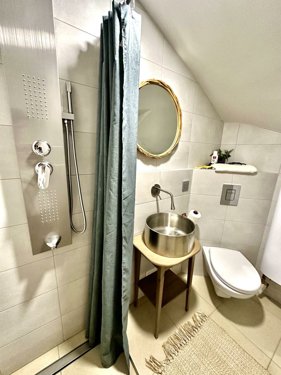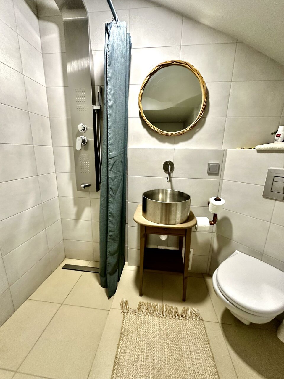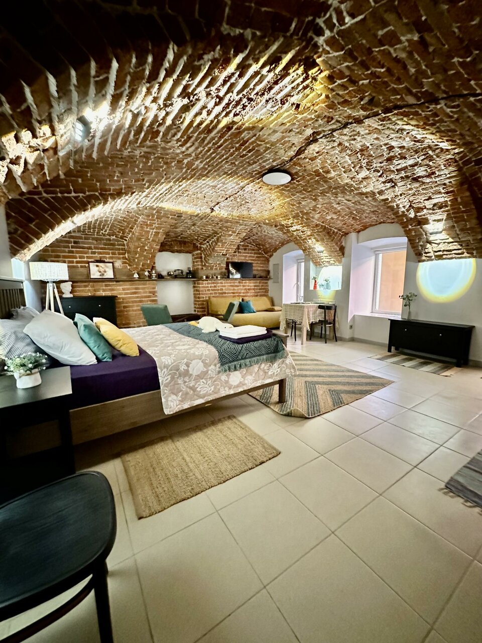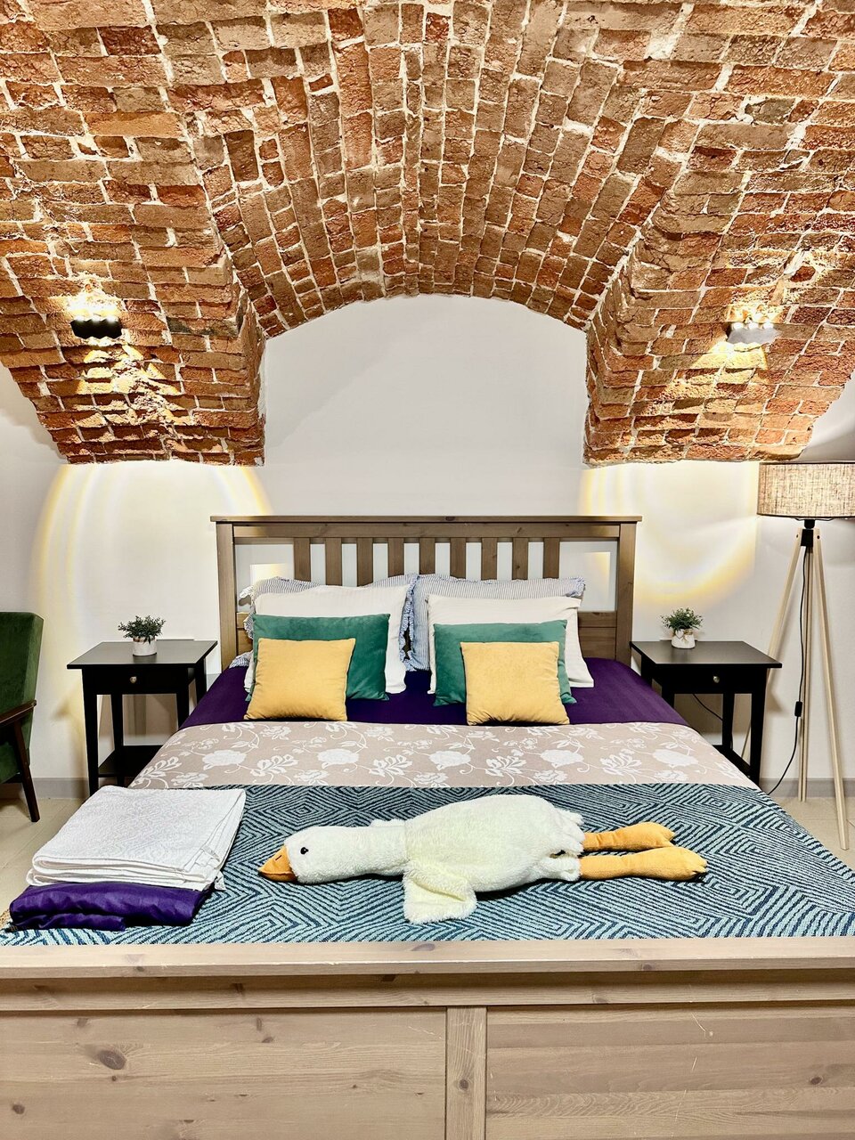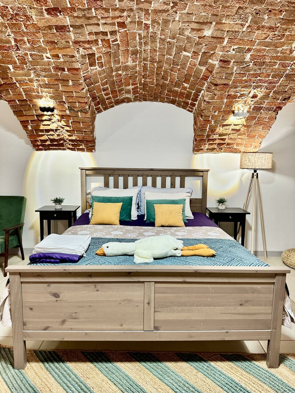 Хороший отель в центре города. До достопримечательностей рукой подать. Всего четыре номера. Один номер с отдельным входом называется винтаж, с кирпичной кладкой. Будет возможность попробуйте его. В нем не получилось пожить, но хотел — свободный, необычный номер. В номерах есть абсолютно всё. Стиральная машинка общая на все номера, чистая без плесени — это плюс. Окна смотрят во двор, место тихое. Есть место для парковки. Рядом остановки общественного транспорта. Кафе, магазины, рестораны, аптеки — всё есть, очень удобно. В номерах соседей не слышно. Стены толстые, шум идет только с коридора. Из минусов. В номере стандарт маленькая раковина, было не всегда удобно — аккуратно умывался, чтобы не пролить на пол воду. По фото номерам увидите.