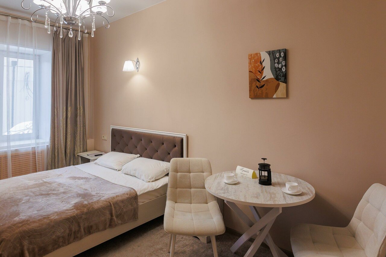 Cовременный однокомнатный комфортабельный номер, уютный с продуманными элементами интерьера, обновленной мебелью, в номере холодильник, телевизор, телефон. Для отдыха имеется набор посуды, чайник. Номер подходит для гостя в деловой, туристической и л