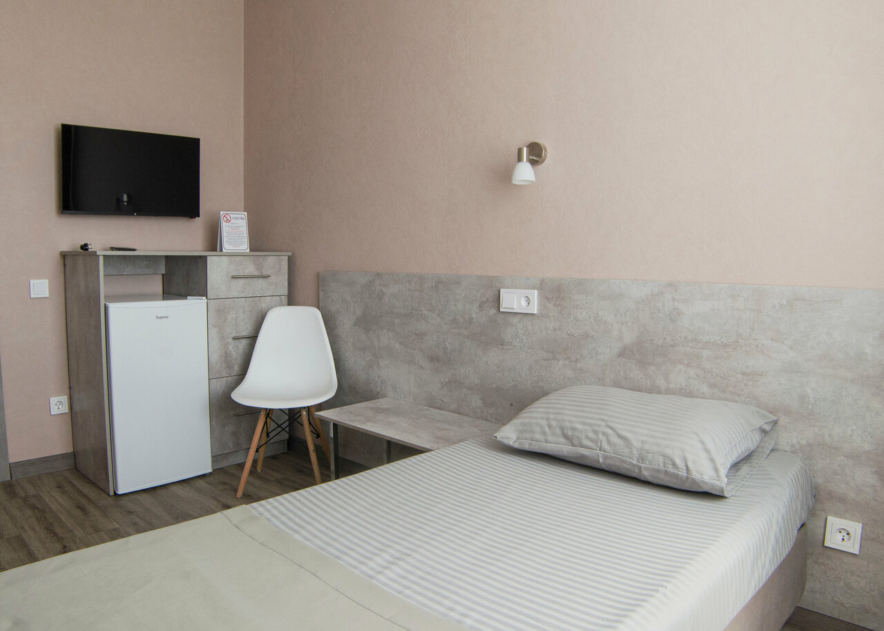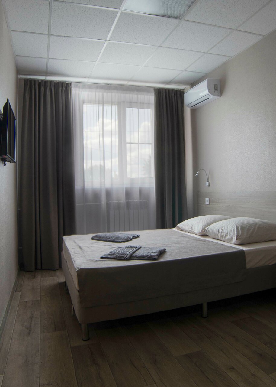 Удобное расположение,прямо по пути следованияна. На первом этаже кафе. Еда нормальная. Недорого. В 100 м АЗС ‘РОСНЕФТЬ’. 2-Х местный номер-1500р. Недорого. Кровати удобные, Белье нормальное. На этом пожалуй достоинства отеля заканчиваются. 1. В номере очень холодно. Ремонт очень бюджетный. Туалет на два номера. Ну ремонт там наверное делали когда то. Но все печально. Из-за холода в номере наверное попытаюсь подыскать рядом более комфортный мотель.