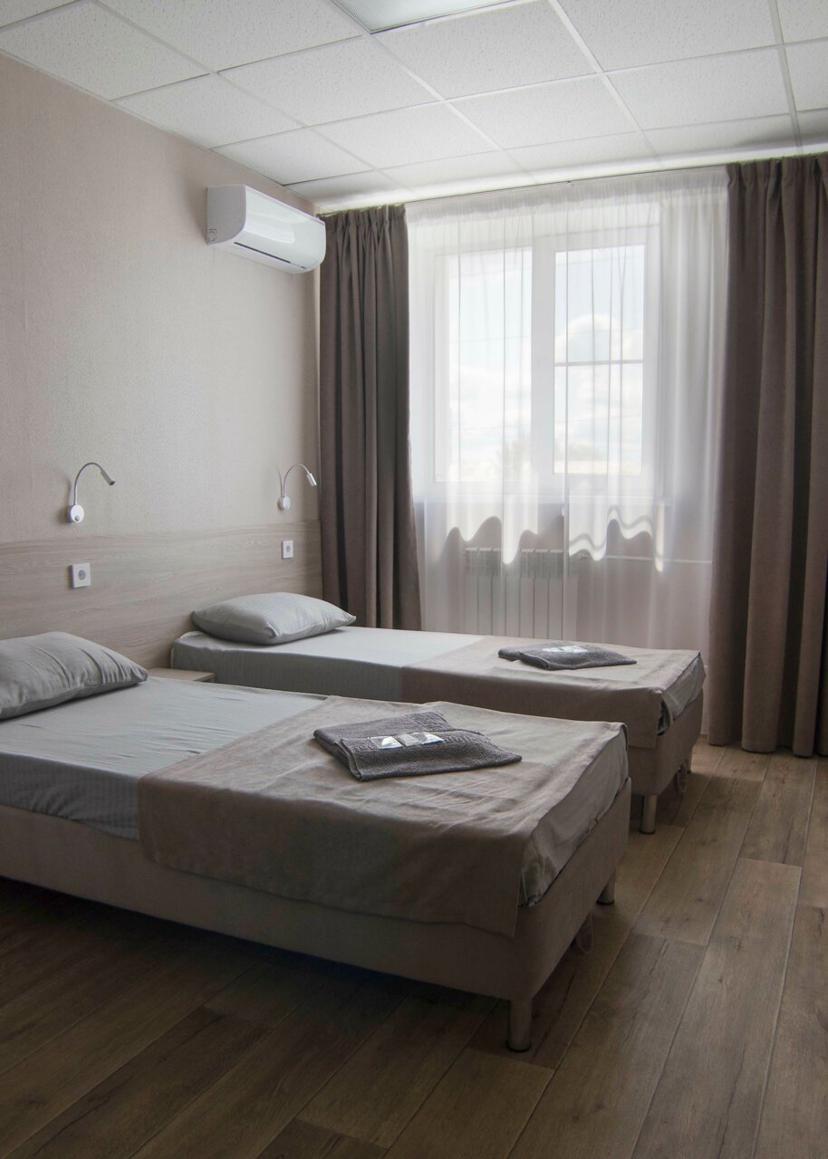 Не скажу что ХИЛТОН, но цена 2500 р. за сутки это очень дешево, душ есть, кровать есть, телик есть, чистенько и тепло, а что ещё надо после дороги!!!!! Единственный минус проблема с завтраком и ужином, в гостинице не кормят.