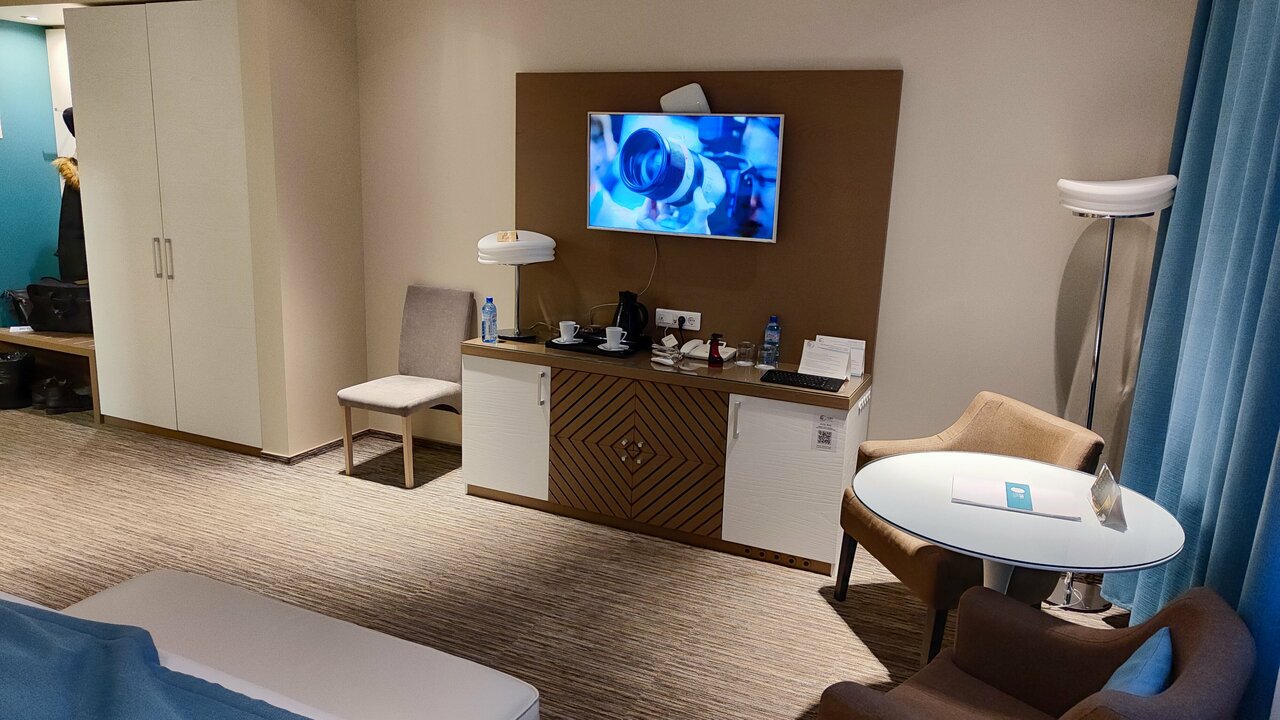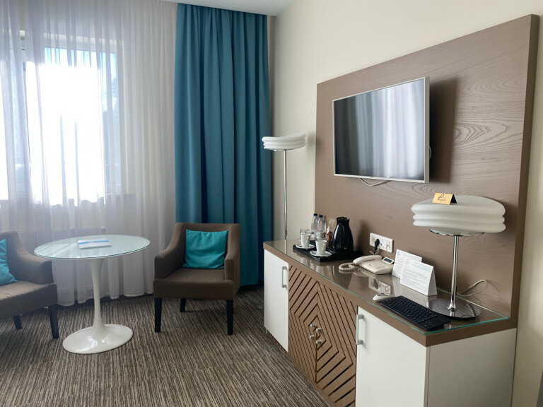 Отличный отель! Прислушались к пожеланиям при бронировании номера, при заселении подарили бутылку шампанского, в честь важного события — очень приятно! Номер на высшем уровне — и интерьер, и удобства.