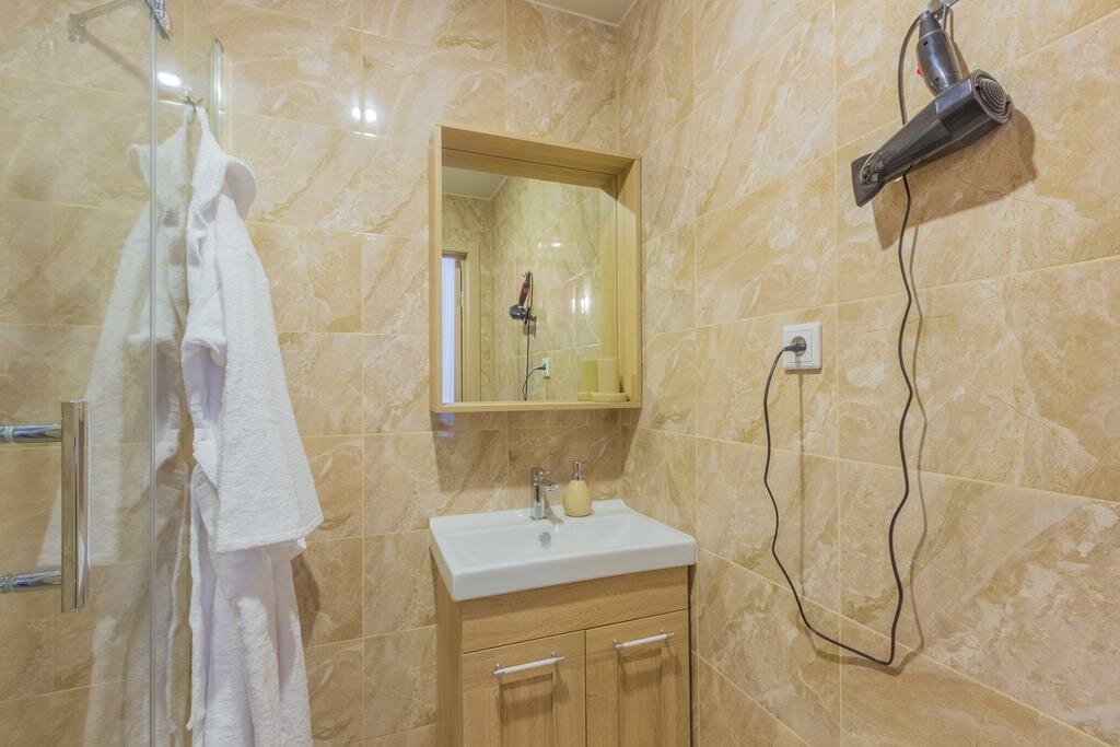 - Хорошая оснащенность номеров (чайник, телевизор, халаты и т. д.).