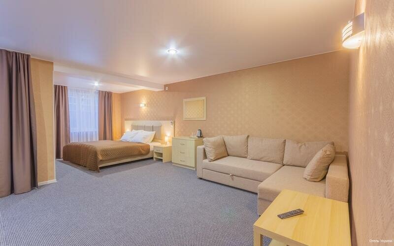 Большой, просторный номер 48 кв.м. с видом во двор. Двухспальная кровать и два раскладных дивана.