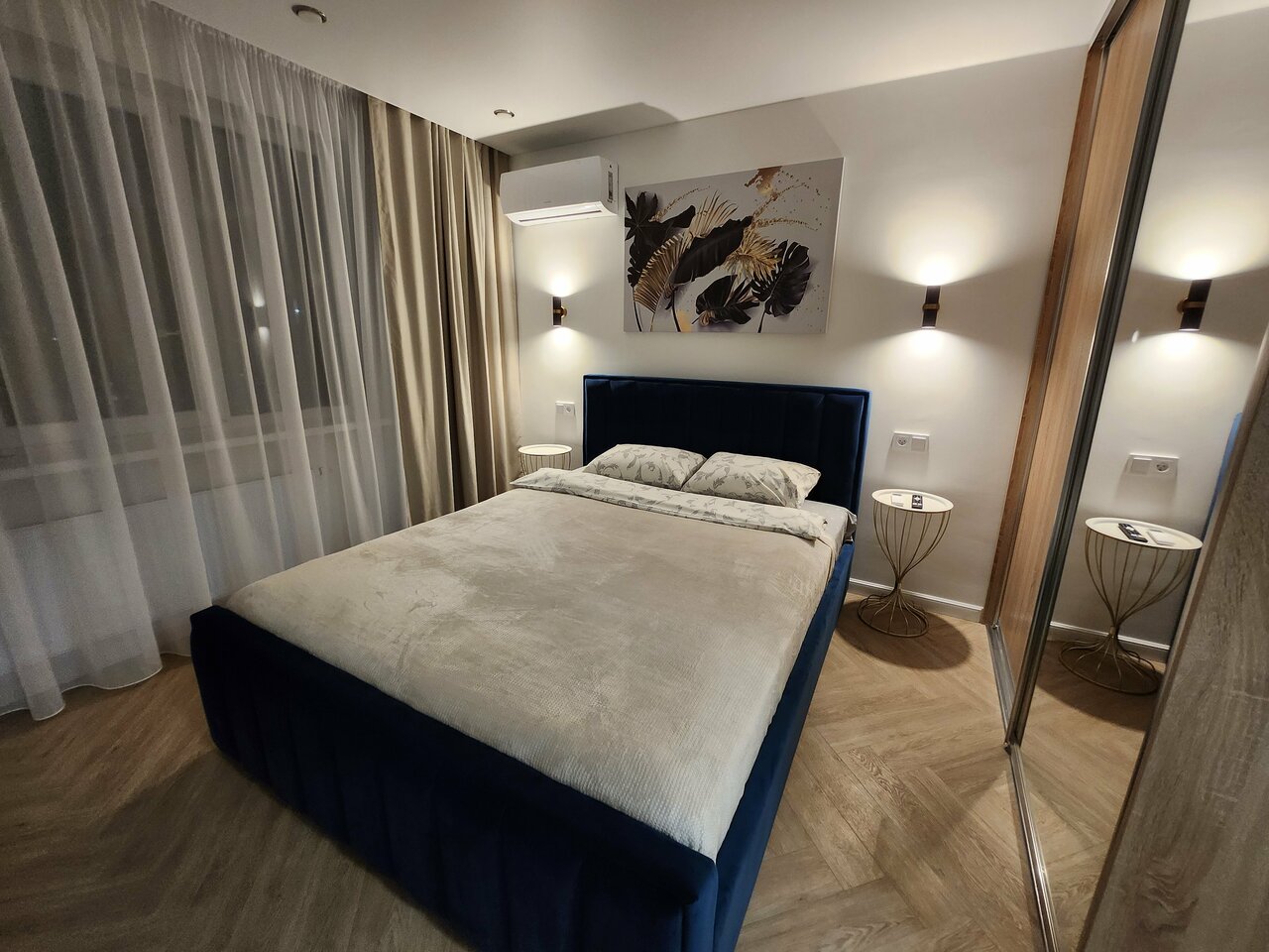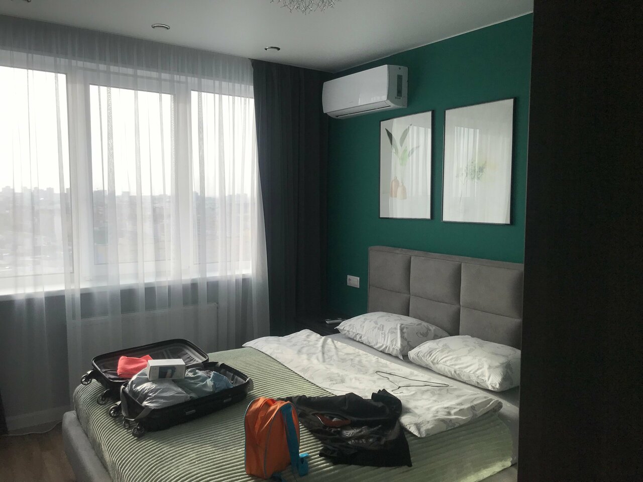 Отличная квартира. Красивая с евроремонтом. Все необходимое есть для проживания. В новом ЖК. Рядом магазины. До центра на транспорте 20 минут. Но, мы пешком ходили часто Рекомендую)