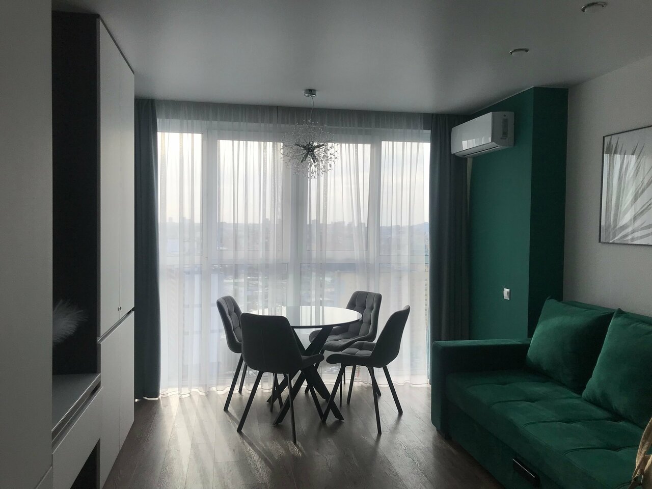 Сами апартаменты отличные, всё есть, чисто, аккуратно. Расположение в целом тоже хорошее — до центра очень близко, хотя, кажется, что это окраина. Территория закрытая, машиномест много, даже вечером машину поставить можно. Но учитывайте, что это очень свежая новостройка, рядом ещё что-то строят, дороги подъездные не очень. Но как вариант для остановки — могу рекомендовать.