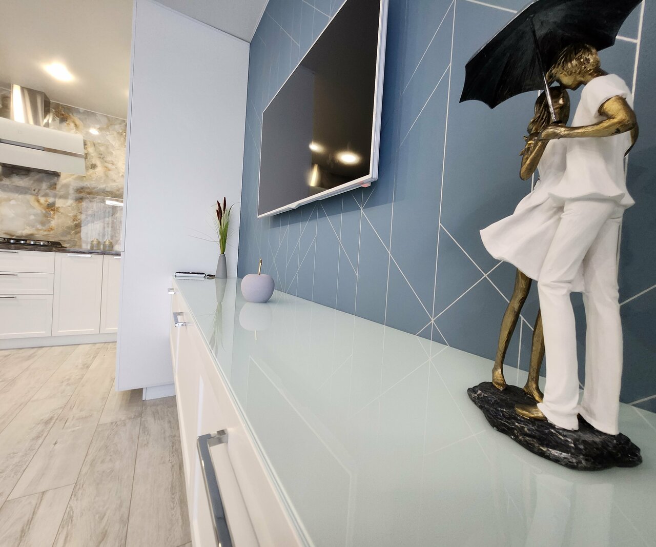 Очень уютные апартаменты! Офигенский современный интерьер, красивый, продуманный, светлый. Мы жили в апартаментах Океан, и я их выбрала за огромное окно во всю стену. Вид на поля и Оку, величественная панорама — просто кайф. Мы даже предпочитали не ходить куда-то завтракать/ужинать, а ели дома с таким крутым видом В общем, нам всем невероятно понравилось, и приедем ещё не раз обязательно