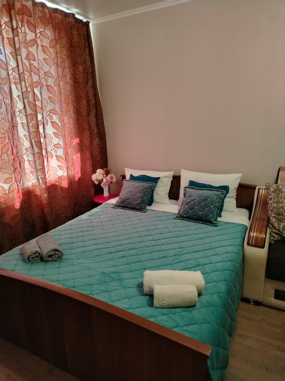 Я осталась довольна чистотой и доброжелательными, вежливыми сотрудниками, которые хорошо нас приняли с добротой и заключили договор. Мы приехали на концерт, брали двухкомнатную квартиру и провели в ней день, а выбрали, потому что нас устроило месторасположение вблизи концертной площадки.