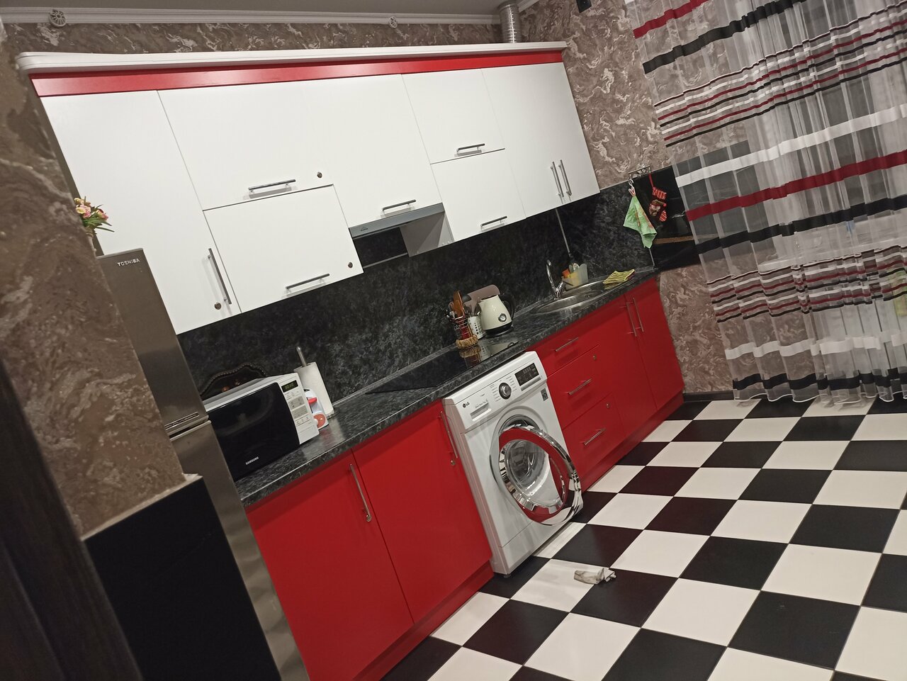 - Наличие кухни с холодильником, микроволновкой, посудой и стиральной машиной.