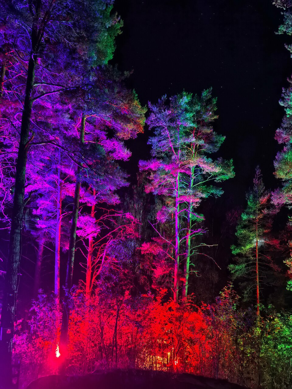 - Атмосферное место с кострищем и красивым ночным небом.