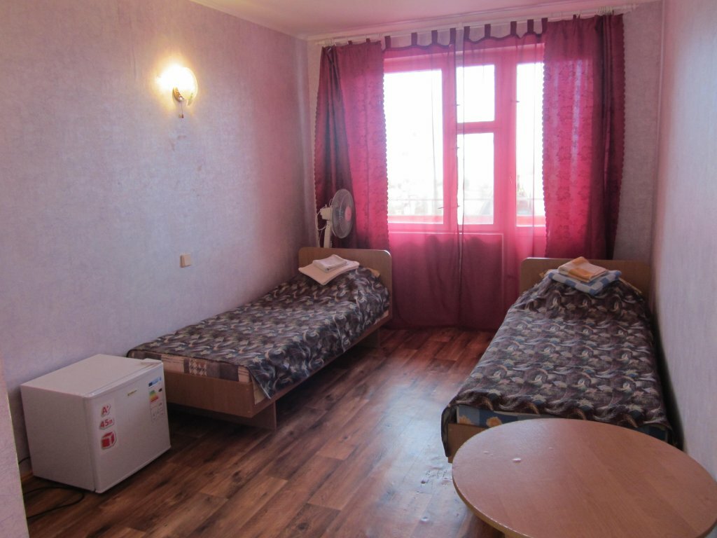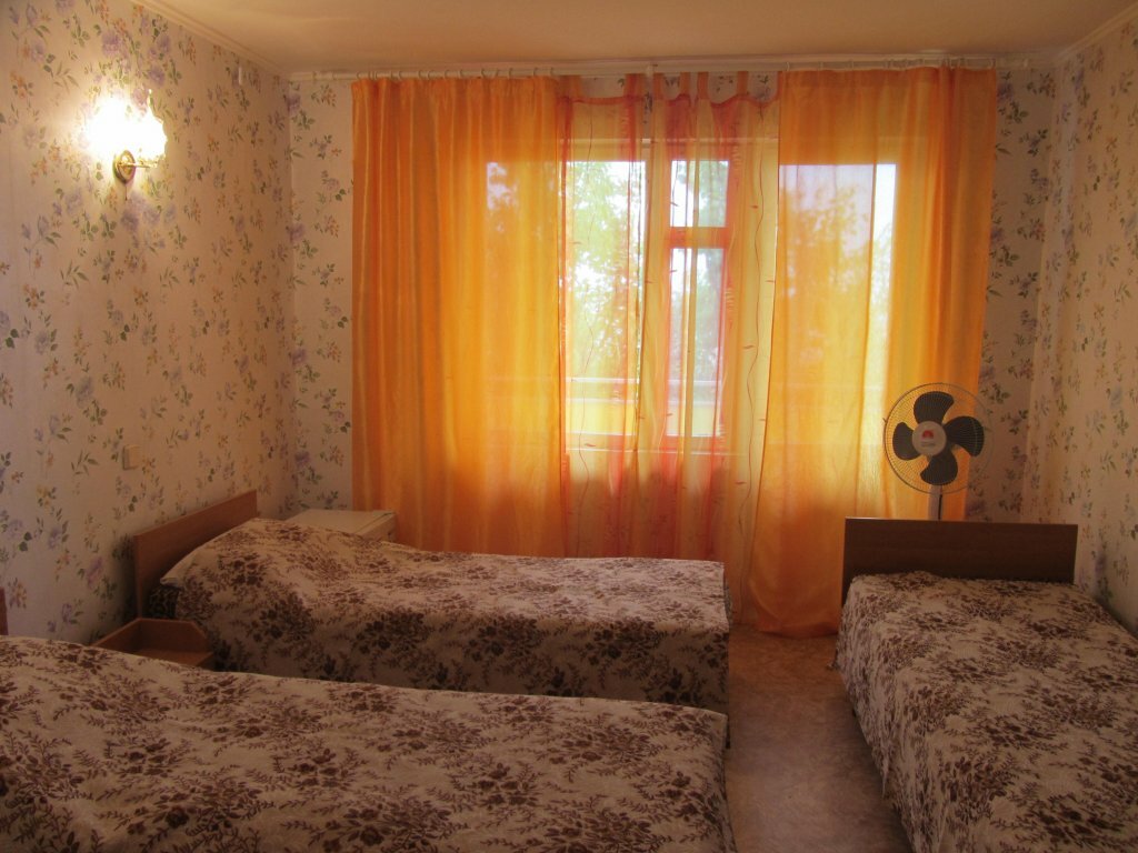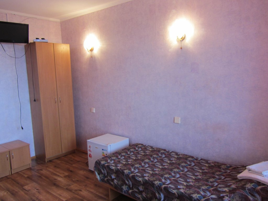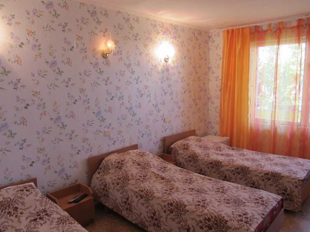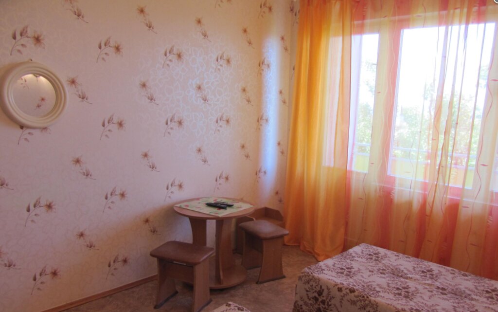Жили в июле2019. Номер не соответствует забронированному через Букинг: размер комнаты 12м вместо 15м и нет холодильника в номере, хотя был указан при бронировании. Хозяйка говорит, что это Букинг всё напутал и бесконечно повторяет, что и так дёшево снимаем, а через дорогу в несколько раз дороже.Я так не считаю, так как в пересчёте получается 20 евро. За такие деньги мы снимаем хостел в городах Европы с телевизором и наличием общей кухни. Вай-фай заявлен на территории. Но реально надо пойти в определенное место на территории, где ловит. Из достоинств- очень хороший повар советской закваски. Порции большие, приготовлено качественно, цены нормальные. Рядом с пансионатом нет ни магазинов, ни кафе. Море за четыре дня чистое практически не было ни разу. То водоросли, то медузы, то пленка какая то жирная вдоль всего пляжа. На пляже ни туалета, ни душевых, грязно. И дойти от пансионата до моря целое дело, так как надо далеко обходить другие пансионаты