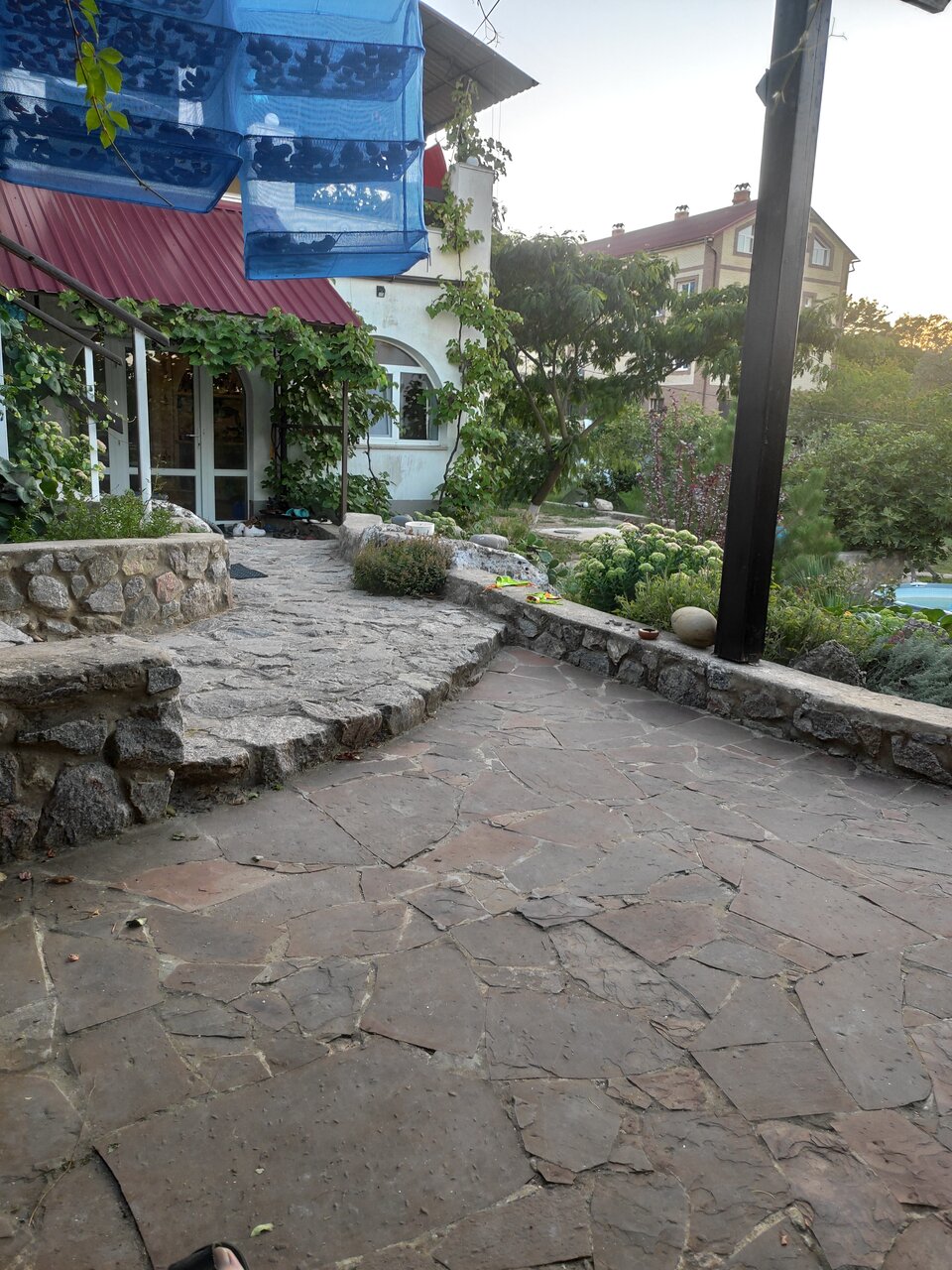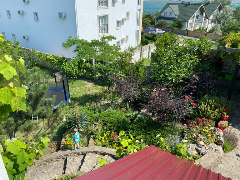 Мы отдыхали там семьей (я, муж и дочка 2,8 лет) на выходных в июле 2022г. Были очень приятно удивлены) в хорошем понимании) Каркасный бассейн, ухоженная территория, утопающая в зелени, прекрасная мангальная зона! До моря 2 минуты) Все очень чистое и красивое! Хозяйка нас встречала — просто милейшая женщина! На самом деле, там очень уютно, и удобно по расположению. Советую. Далеко не везде можно найти все условия — для семей с детьми. В номере был чайник, кондиционер! Хорошая горячая вода с хорошим напором. Это не везде в Крыму так. Вход в номер был на 2 этаже и была к нему большая терраса.