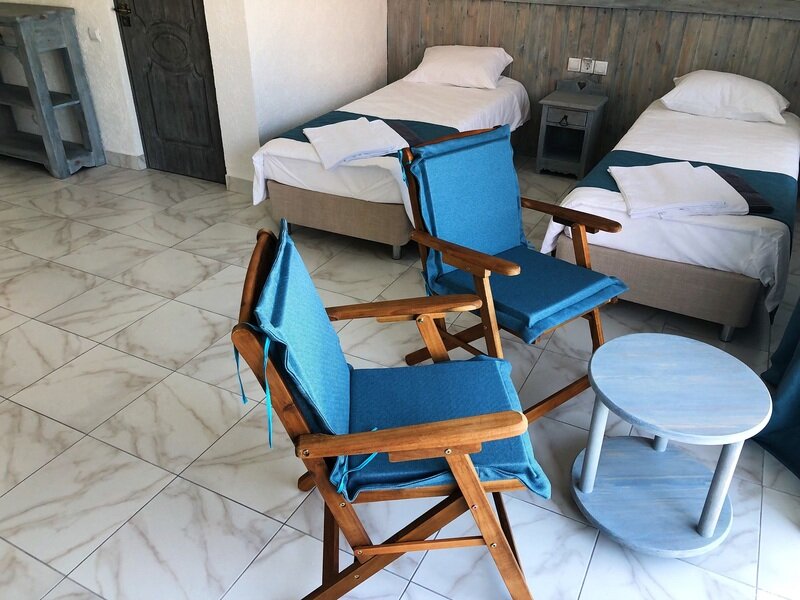 - Кондиционер, холодильник, телевизор в номерах.; Греческий стиль оформления.; Дружелюбный и внимательный персонал.; Ежедневная уборка.; Хорошая мебель и удобные кровати.