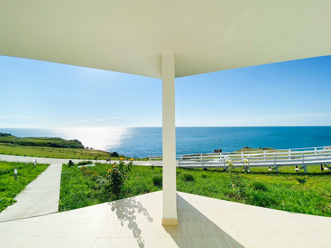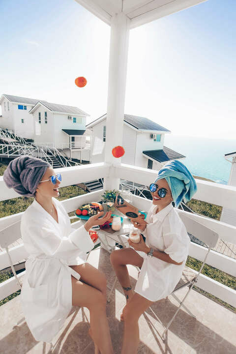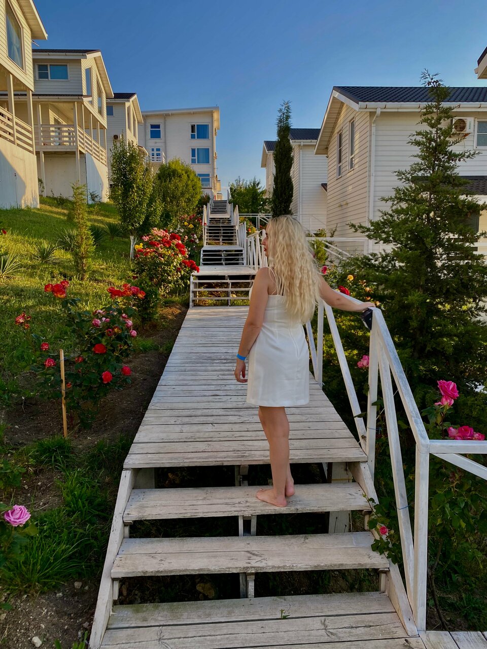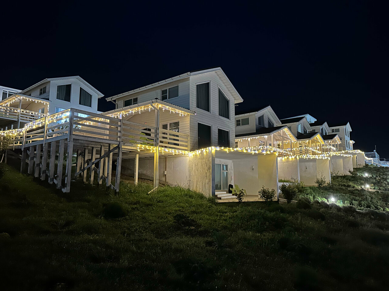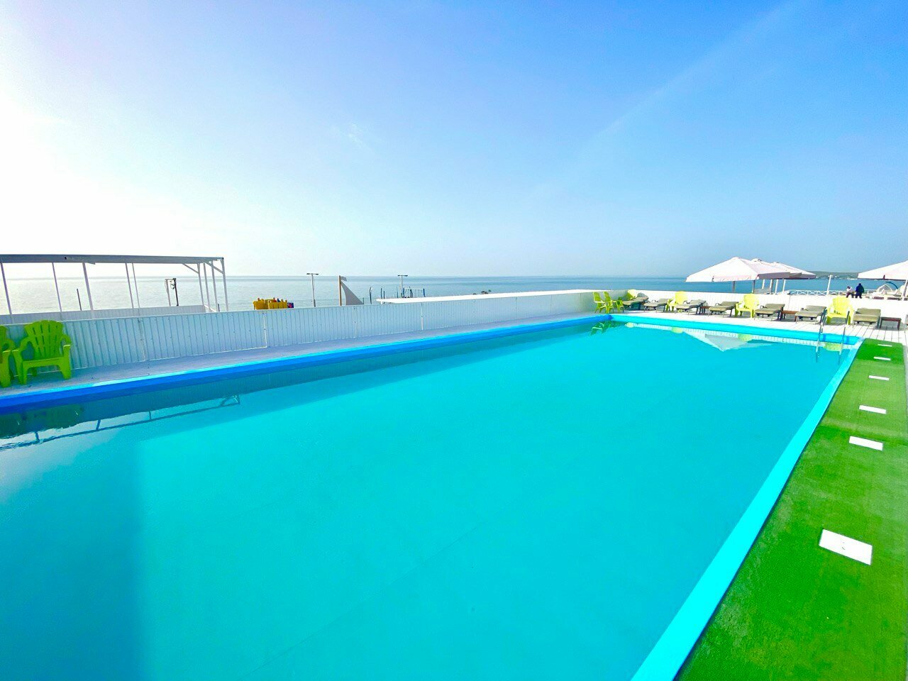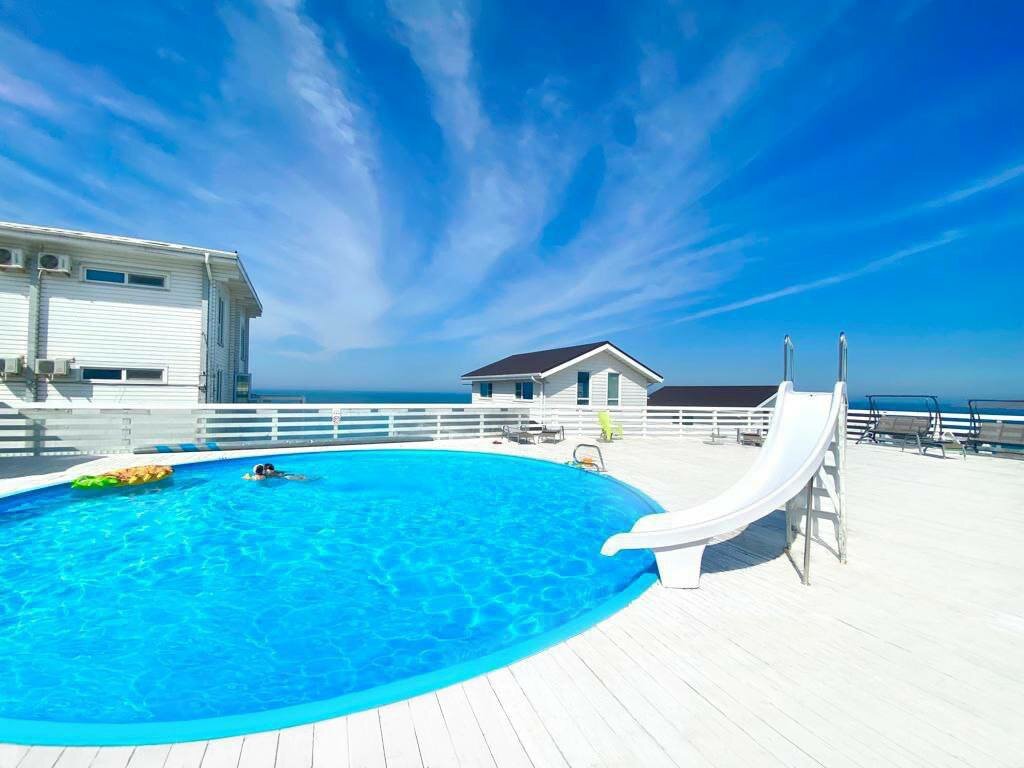 Довольно хорошая задумка, все оформлено в белом цвете, номера красивые, есть много развлечений, надуваемые по времени батут и горки в бассейна, Разных бассейнов от 0.5 до 1.5 метров много(подогреваемые и нет), сауны, бани, небольшой пляж у моря. Виды красивые. Но есть и минусы — чувствуется черезмерная экономия во многих деталях. Гладильные доски(с самыми простыми утюгами) и стиральные машинки располагаются в отдельных комнатах(стиральный порошок видимо нужно привозить с собой). Бронировать номера лучше с 3х разовым или более питанием, так как рядом нет отдельных кафешек. В общем твердая четвёрка.