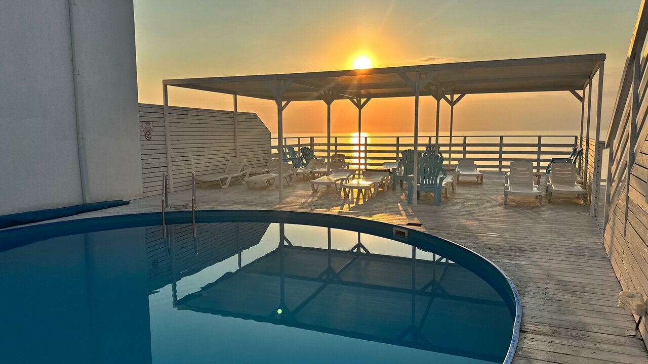 Отдыхали семьёй и с друзьями в начале августа 2024 года. Очень понравилось! Комфортные и просторные номера, убирают каждый день. Шведская линия достойная, разнообразные блюда как для взрослых, так и для детей, каждый день новые блюда. На территории имеются бассейны, водные горки для детей, надувные батуты каждый вечер, обычные батуты, детский и подростковый клубы. Очень порадовало наличие бань. Собственный пляж конечно небольшой, но зато на берегу моря есть баня и пирс. А закаты просто сказка!
