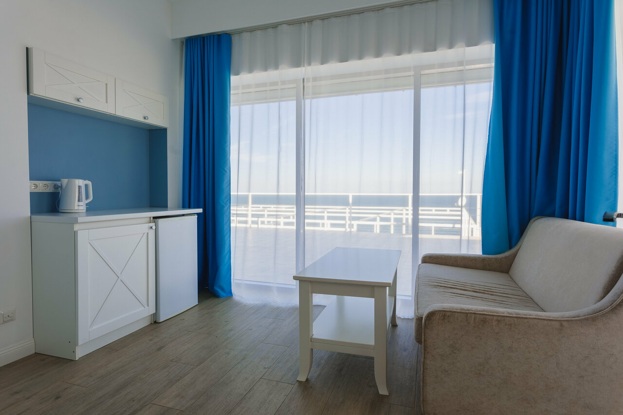 Честно говоря, не ожидали такого уровня от отечественного курорта! Приятно удивили просторные номера с панорамными окнами, из которых открывается потрясающий вид на море. Шведский стол разнообразный и вкусный, особенно порадовала свежая выпечка каждое утро, вкусная местная рыба и разнообразие закусок. Персонал внимательный и отзывчивый. Особенно запомнилась русская баня на пляже с видом на море это что-то невероятное.После бани прыгали прямо в море, ощущения непередаваемые. Дети были в восторге от бассейнов и анимации. Обязательно вернемся.
