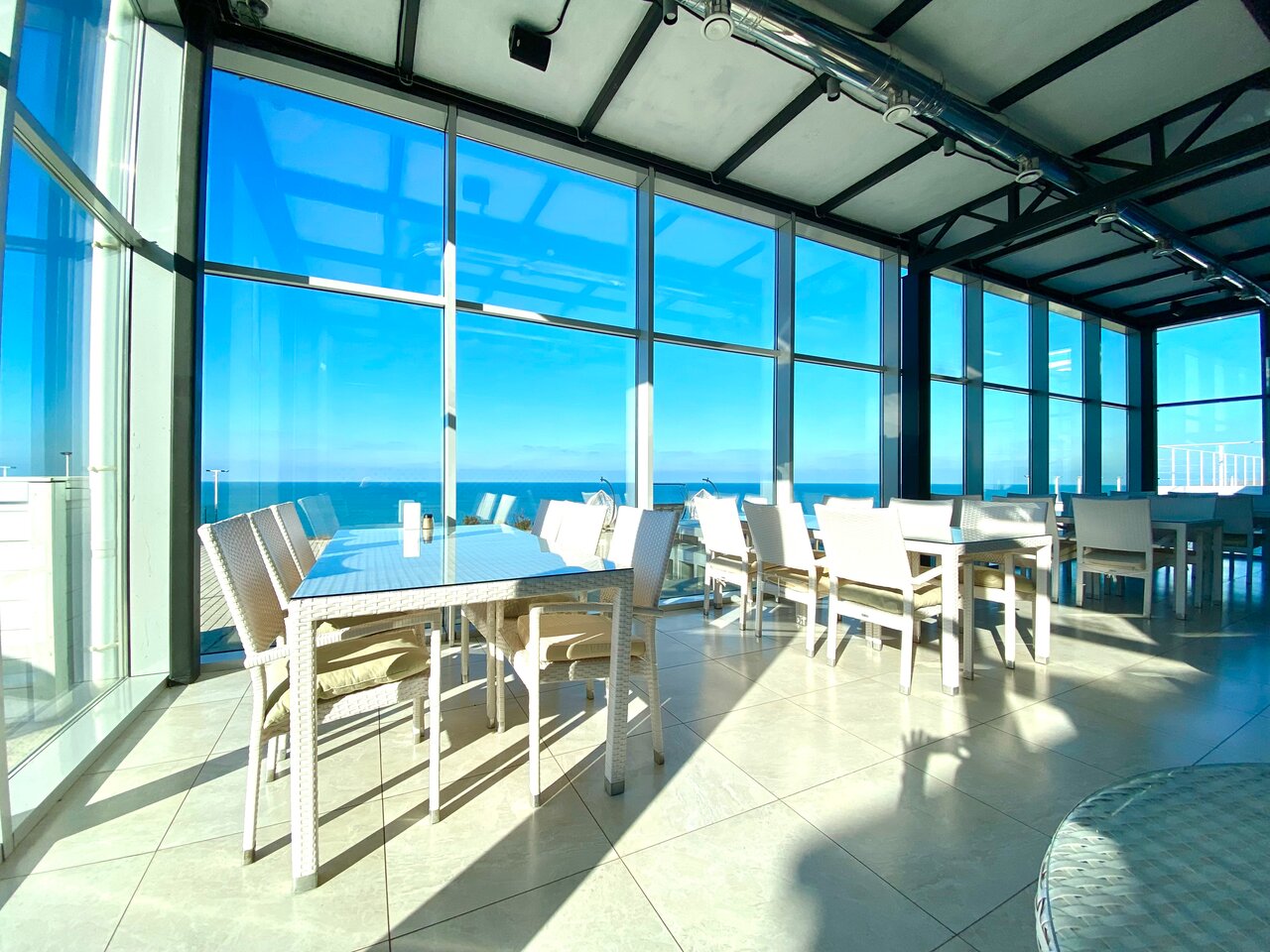 - Просторные номера с панорамными окнами.
