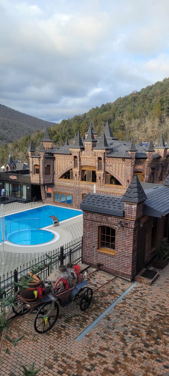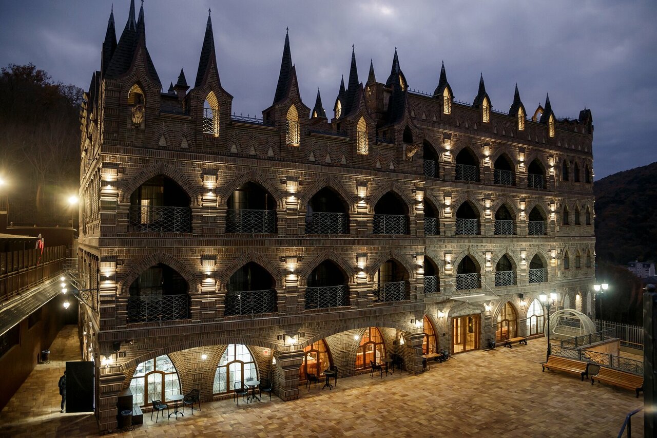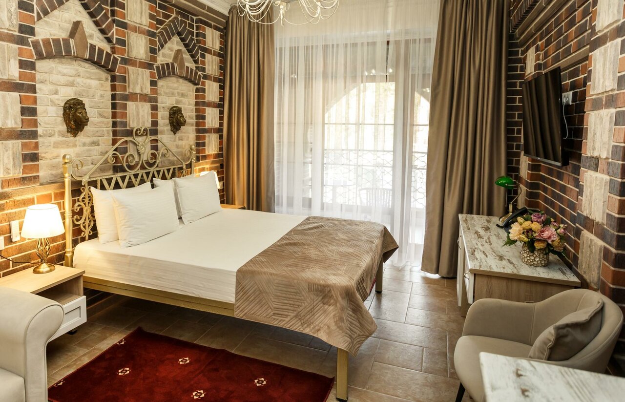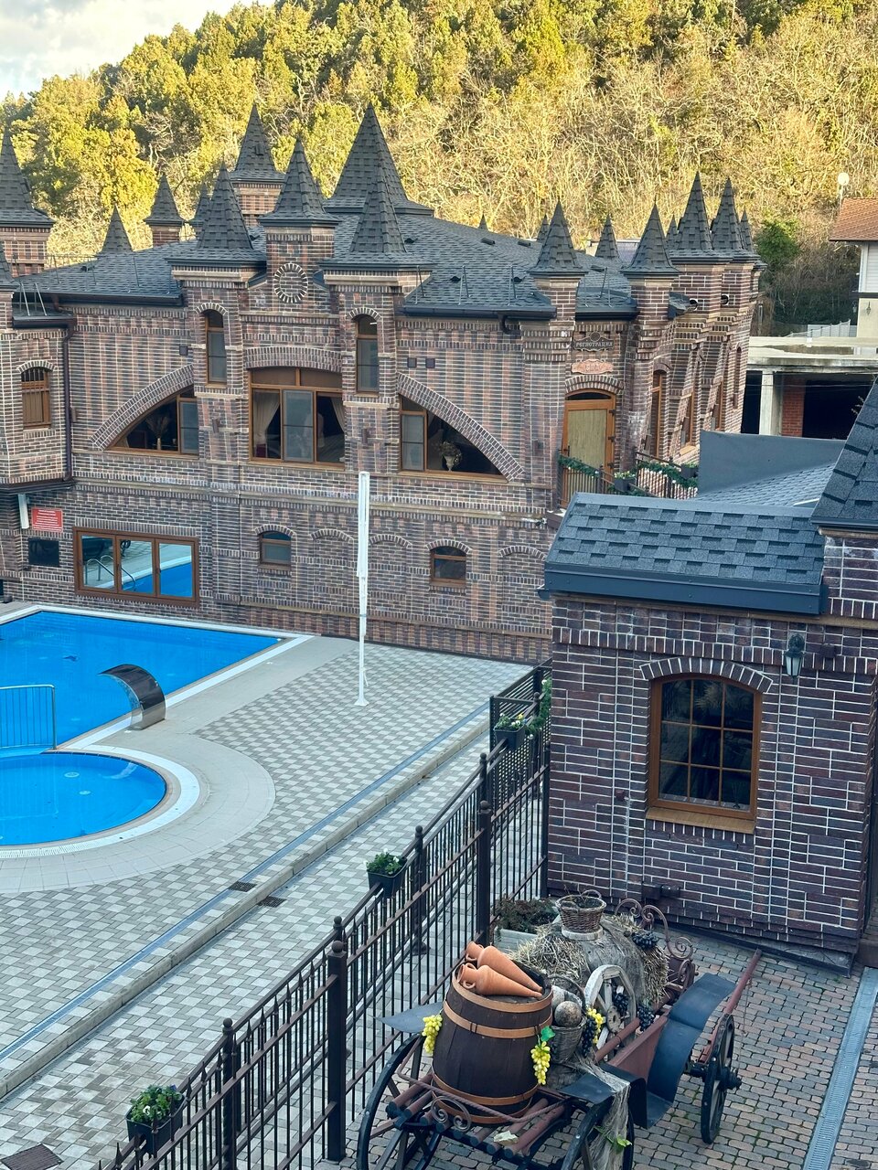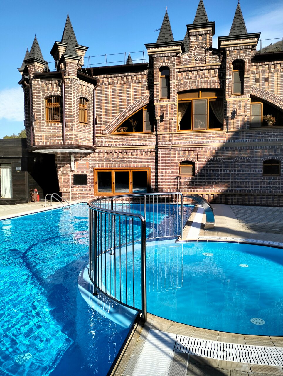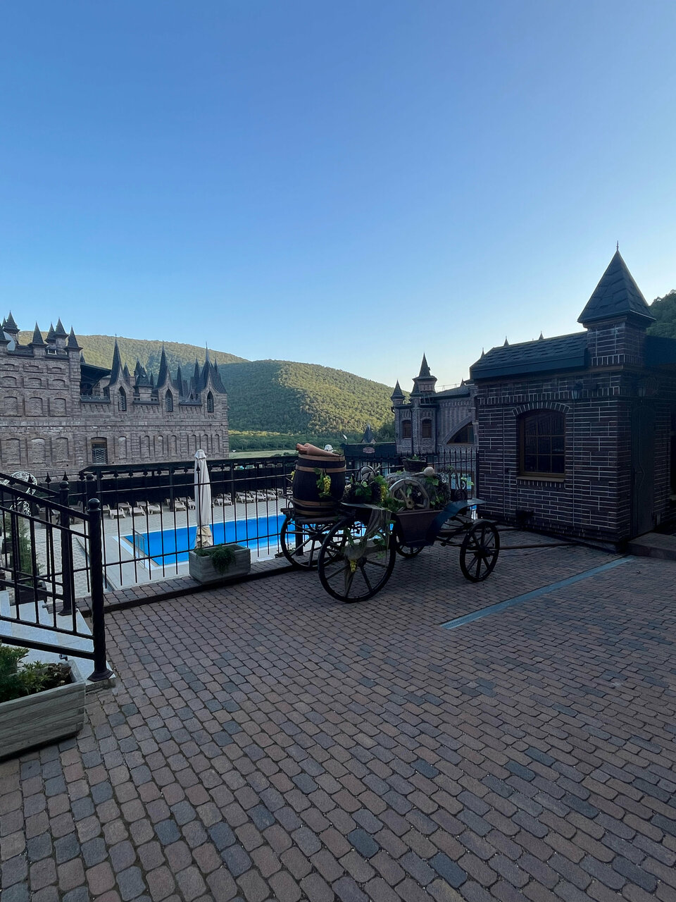 - Красивая территория и архитектура (отель-замок под старину).; Развлечения (бильярд, теннис, мангальная зона).; Живописные виды и ухоженная территория.; Чистые, уютные и полностью оснащённые номера (полотенца, халаты, принадлежности).; Отличный банный комплекс (хамам, бассейн, джакузи).