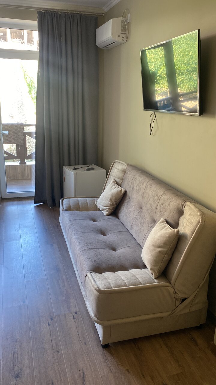 Рекомендую однозначно. Пицца объедение. Вино сказка. Номер — такое чувство что до нас ни кто не жил. Отдыхали 5 дней с 2 по 7 сентября 2022 с семьёй. Балкон выходит на виноградник. Шикарный вид на холмы. Море чистейшее в 5 минутах ходьбы.