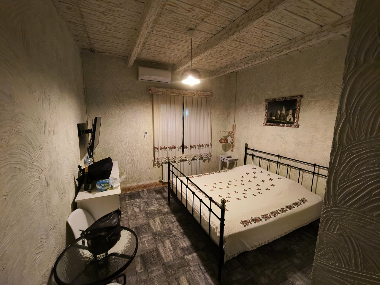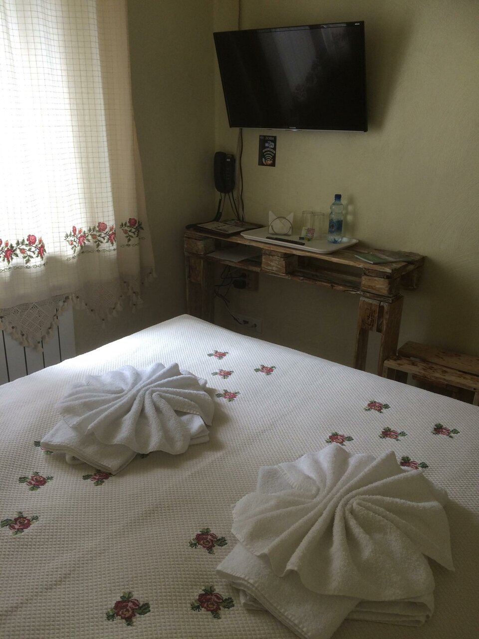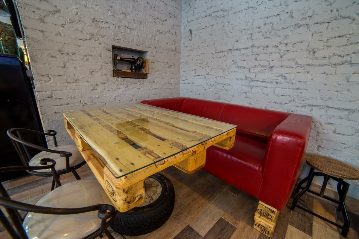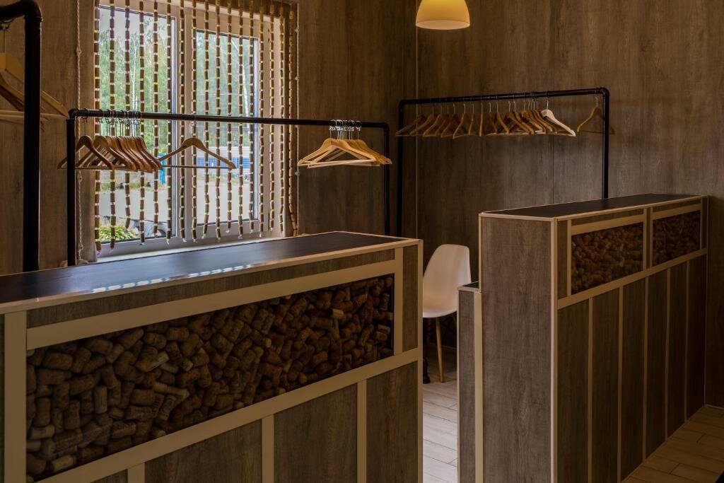 Отель на для комфортного отдыха это точно. Посидеть с друзьями, вспомнить под приятную атмосферу — это да. Но номера, — ахххх! Кровати из поддонов (в принципе вся мебель и антураж гостиницы в таком стиле) и очень мягкий матрас. С больной спиной придётся тяжеловато. В номере только 2 стакана. Ни чайника, не ложки — нет. Интернет сигнал очень слабый. Из плюсов — шикарная парковка и место для курения на этаже