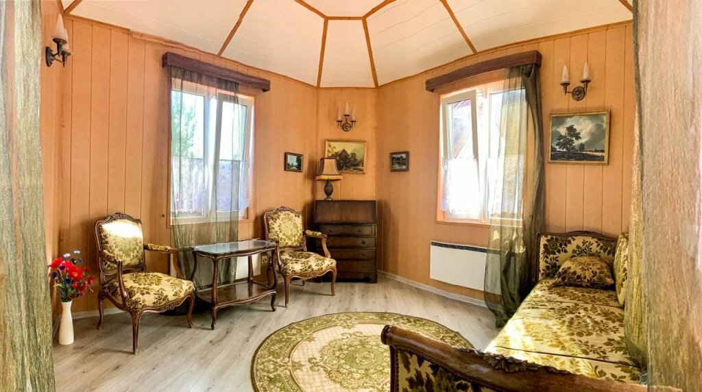 Подойдет на одну ночь/пожарить шашлыки. Плюсы: 1. Гостеприимные и дружелюбные хозяева 2. Очень уютная гостиная и террасы 3. Свежий воздух и тишина вокруг 4. Везде есть вайфай Минусы: 1. Ничем не примечательное расположение в СНТ. Нет озера в пешей доступности. Поэтому ехать сюда более чем на 1 сутки смысла нет: ничего интересного и заняться тут нечем. 2. Найти трудно, навигатор привел не туда, интернет почти не ловит, вывеска крохотная и незаметная, еле нашли 3. На территории очень не хватает хоть какого-то дизайна, озеленения, цветов, фонтанчиков. Чисто так все топорно по-русски, а хочется французского очарования)))