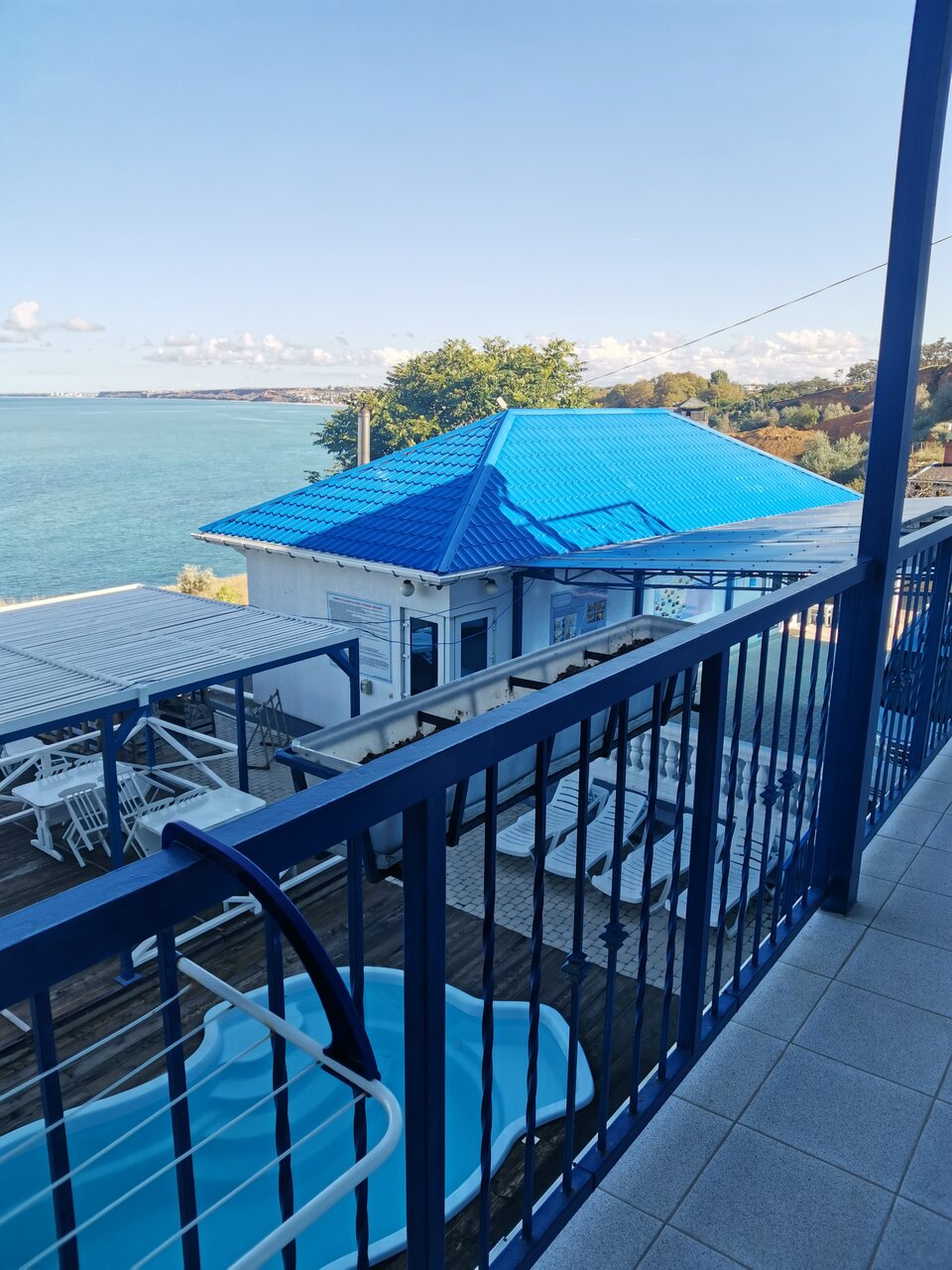Гостишка отличная, постельное белье хорошее и чистое, номера тоже приличные. Хозяйка готовит завтрак, каждый день новое:каши,запеканки,блинчики,бутеры. Можно заказать обед через хозяйку, очень вкусные. Есть доставка еды из ТД, кафе при въезде. . Есть бассейн и офигенный вид на море. Сейчас правда регулярно летают вертолеты и миги, очень шумно. Есть парковка на 6 машин, но можно оказаться запертым, но можно и наверху оставлять машину, минут 5 пешком идти. Есть одно неудобное место при заезде, но низкие машины проезжают. После дождя очень грязно идти. Самое неудобное это спуск к морю. Для взрослых норм по лестнице, но детям не очень. Лестница крутая и местами ушатанная, после дождя вообще не вариант там идти. Но минут 10 пляжем до Укуевки, где все развлечения. Минут 15 до парома в Севастополь