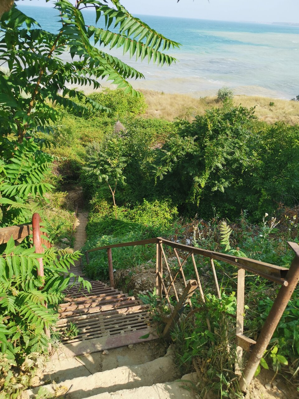 - Плохой спуск к морю (разрушенная лестница, колючие кустарники).