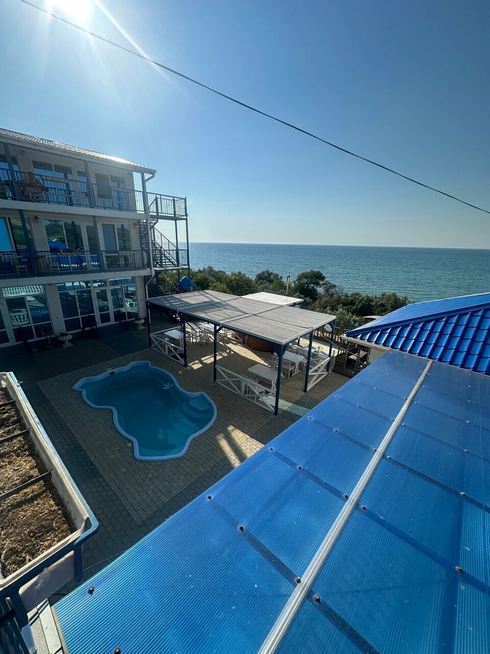 Из разряда ожидание/реальность. Плохое впечатление. Приехали всей семьей к 17.00. К нашему приезду номер не подготовили(полотенец не было, постельного белья и сушилки для пляжной одежды тоже). Номер за 3 дня никто не убирал! Пульт от телевизора не работает, плита для готовки тоже. Территории никакой, видимо разместили фотографии какого-то парка. Бассейн очень маленький и грязный, никто не купается, очень холодная вода, весь день он находился в тени. Еда не вкусная и никакого выбора ее нет. Чтобы спуститься к пляжу нужно преодолеть аварийные ступеньки. Пляж рядом со спуском очень грязный. Необходимо идти до чистого места 7-10мин. Не отдых ,а сплошное разочарование!