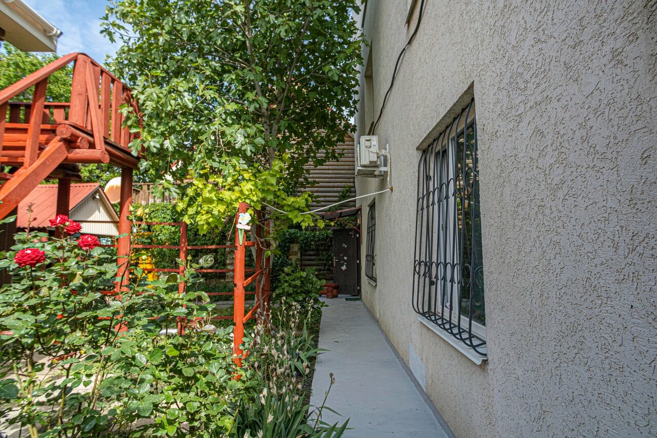 Отдыхали в июле большой компанией. Дети играли на общем дворике. Есть веранда с большим столом. Готовили на улице (газ), но есть плиты и в номерах. Хозяева могут при необходимости оказать услуги монуала, остеопата. Подходов к морю несколько. Ближайший — пляж Толстяк. Магазины по близости только продуктовые. Пешком можно дойти до парома, что перевезет на южную сторону города . Там больше городских развлечений и музеев. Бонус в доме — плоская крыша с великолепными видами на восходы, закаты, море.