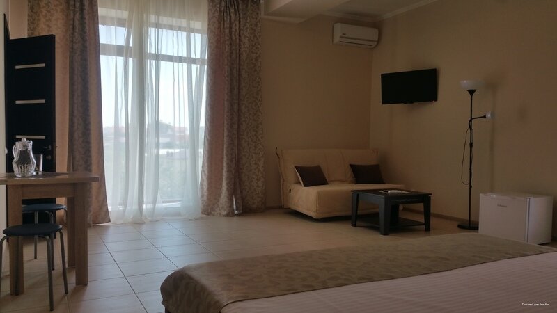 Отличное место! 1. Стоимость номера за сутки более чем адекватная в этом году (2021)! 2. До моря 10 минут бодрым шагом и Вы вольный выбирать маршрут). 3. Есть детская площадка. Наш ребёнок играл на ней с удовольствием. 4. Есть турник, брусья, если Вам, конечно, надо. 5. Возможность заказывать питание (завтрак, обед и ужин). Мы брали завтраки. Каша, омлет/яичница, блины/оладьи это все одна порция! 6. Парковка возле дома. 7. Единственное, что доставляло неудобство это матрас, он очень мягкий, но это скорее мои проблемы)). 8. Очень радушный и отзывчивый хозяин Дмитрий. Все вопросы и просьбы были решены и выполнены. 9. Уборка раз в три дня с заменой полотенец и белья. 10. Много детей, поэтому если Вы с ребёнком, то это огромный плюс!