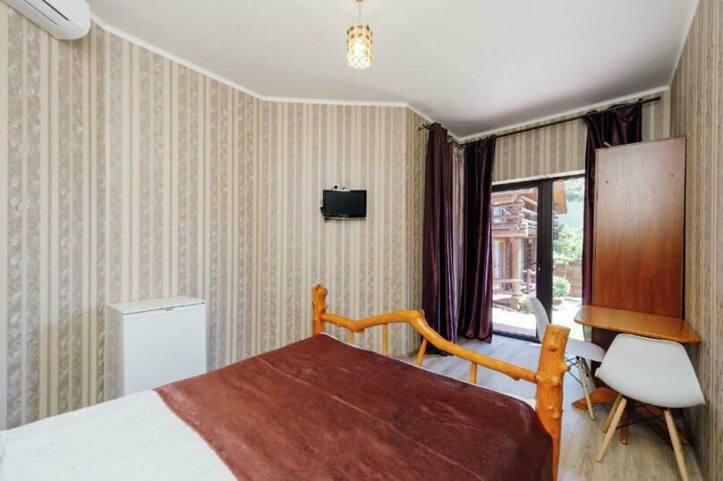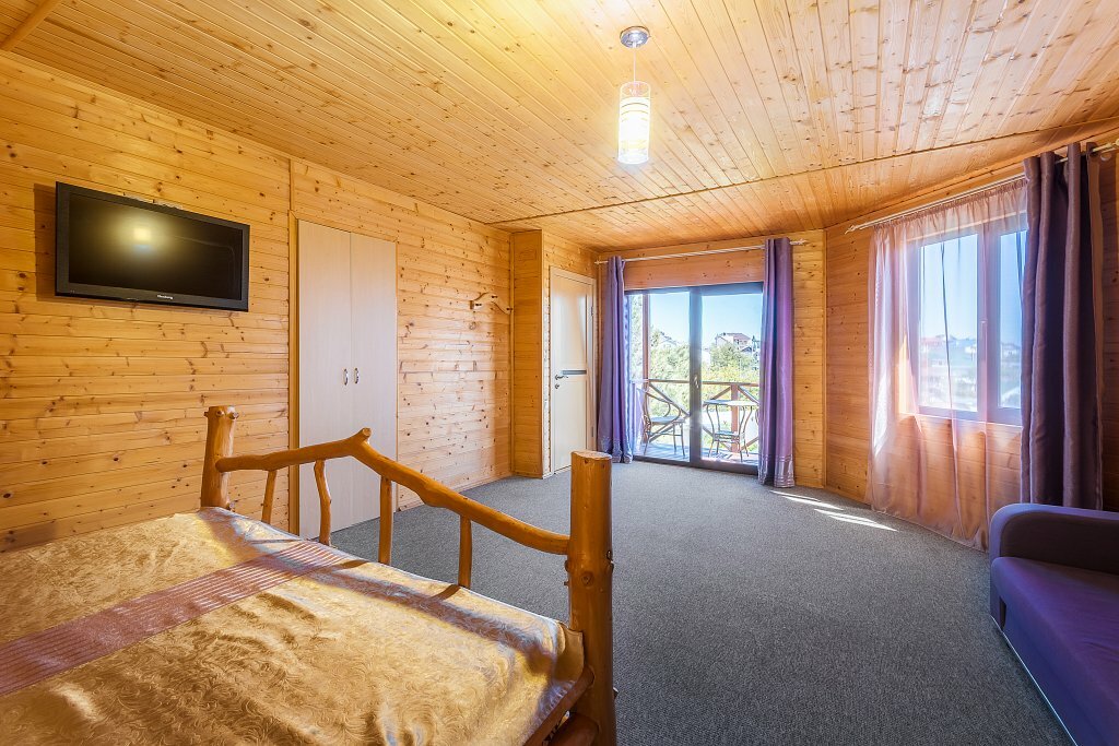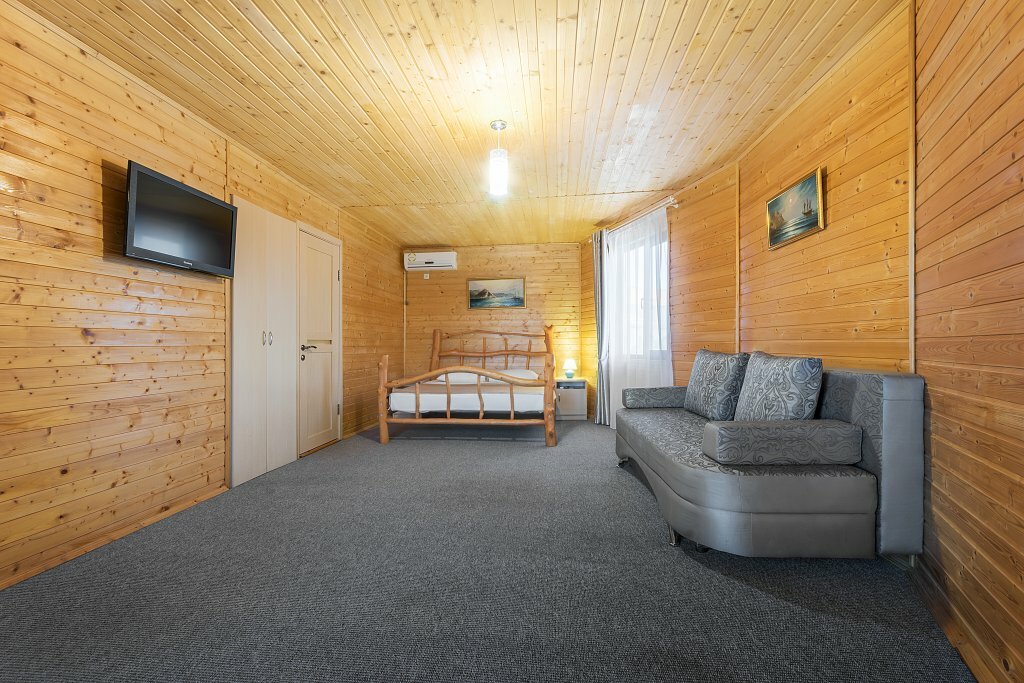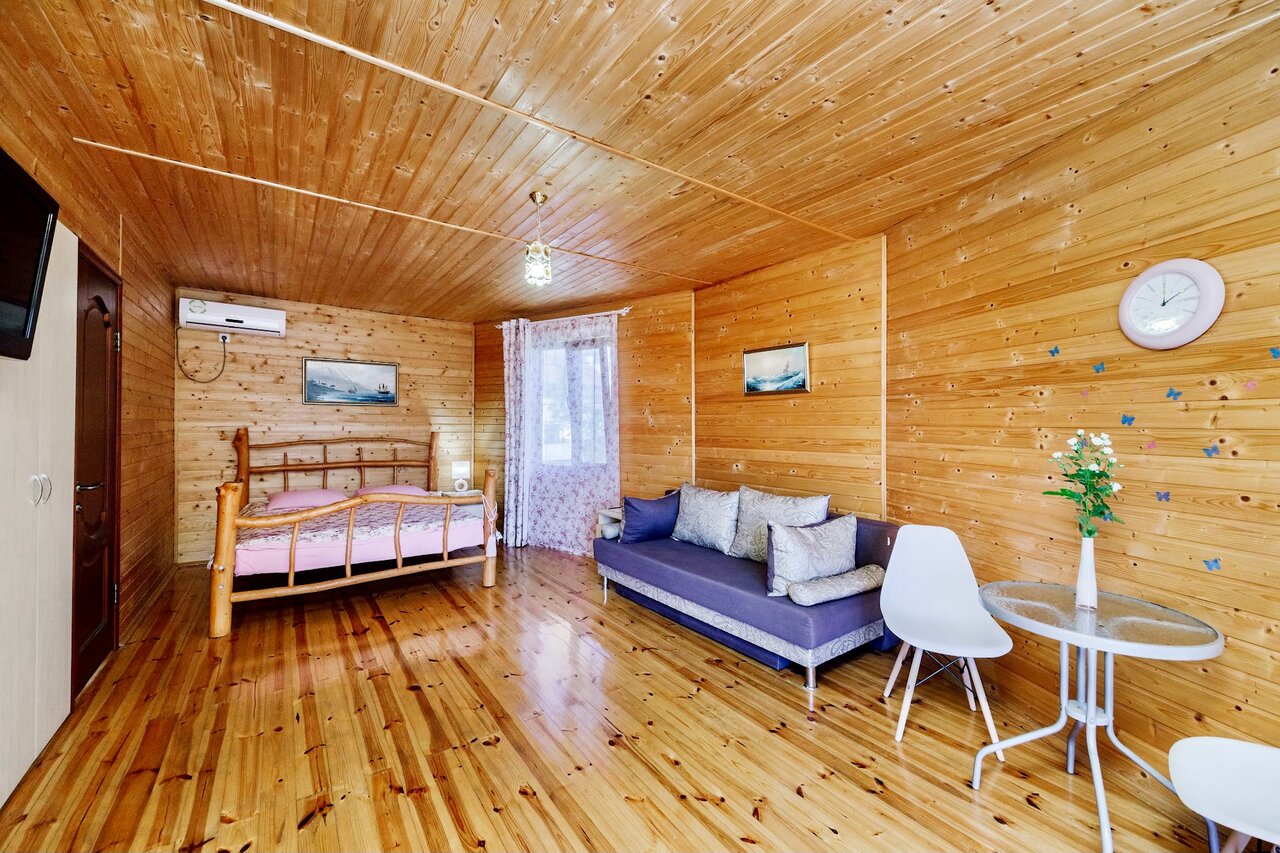 Приятное недорогое(по меркам Севастополя) место. Есть номера побольше со стандартной отделкой и небольшие отделанные деревом. Очень красиво, но они крайне небольшие, кровать занимает почти все внутреннее пространство