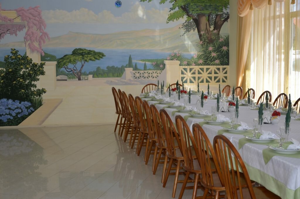 Ужасное место для отдыха!!! Хозяйка не приятная алчная особа. Цены у них в кафе завтрак 2 взрослых и 2 ребёнка 2500 это 2 кружки каши детям и по омлету с чаем. Одна сосиська стоит 80. Ни в коем случае не советую ни кому. Разочаровался отзывы были вроде бы хорошие оказывается фейковые отзывы.