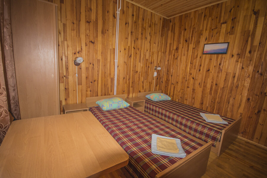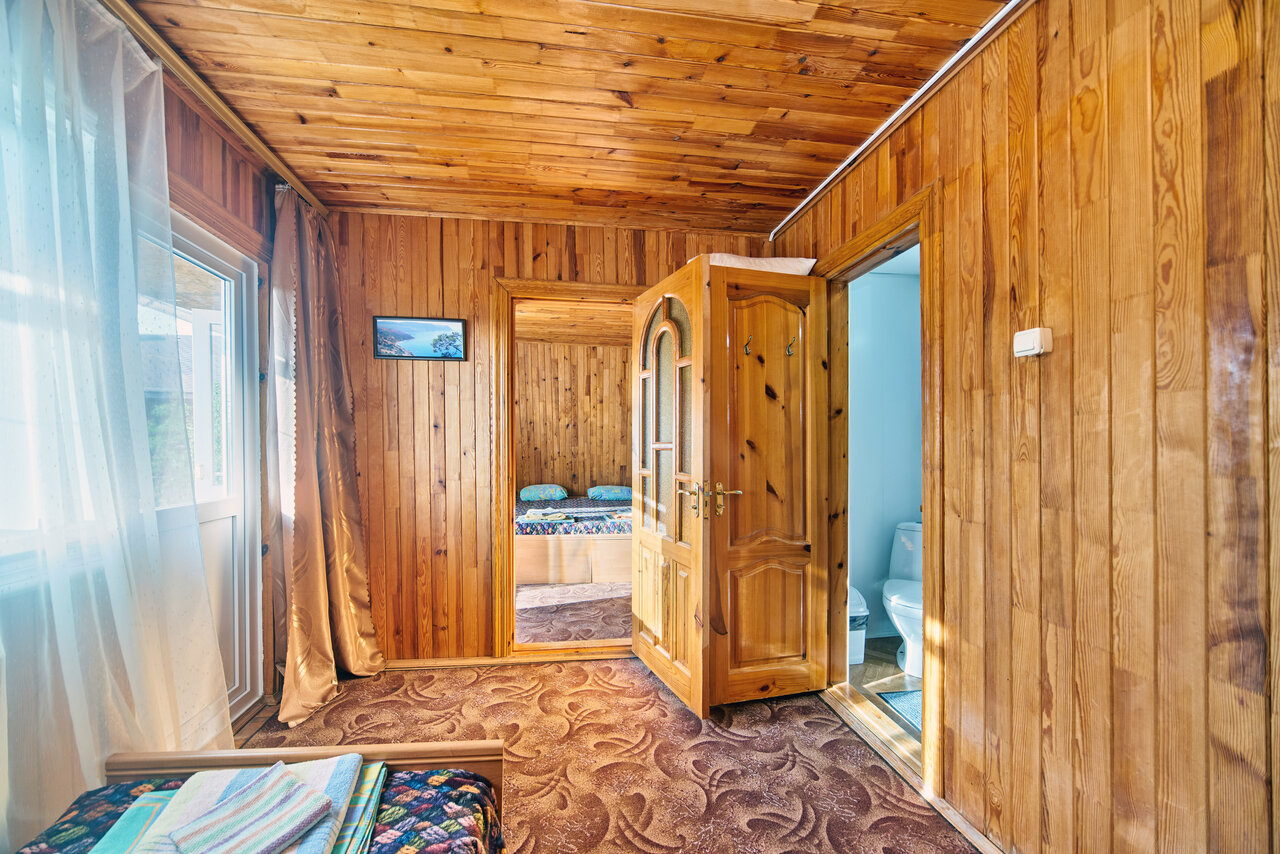 Минусов не увидел (личная оценка). В каждом номере есть кондёр и холодильник. Дома деревянные, температуру удерживают хорошо! До пляжа (Нахимовец) 10 мин. спокойного шага. Пляжи оборудованы спасательным снаряжением. Есть кубрики для смены нижнего белья, душ с пресной водой и туалет. Есть так же заведения где можно поесть и уталить жажду. Покрытие пляжа комбинированное. Есть песок и средняя галька. При входе в море полоса гальки, около 4 м. До глубины 1.0-1.4м. Далее песок. Это в 2024году(начало Июля). Но всё зависит от силы и направления нижнего течения. В целом, отдых отличный!