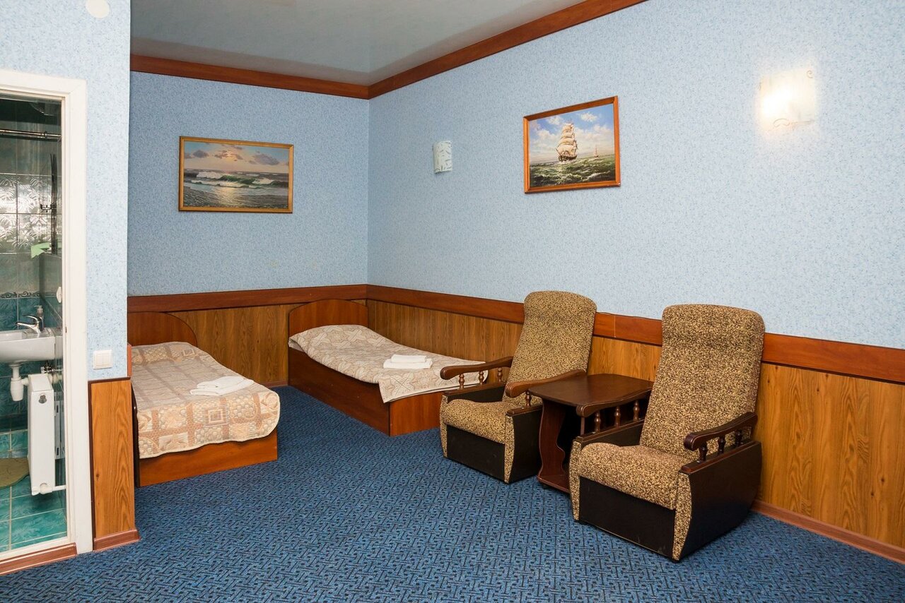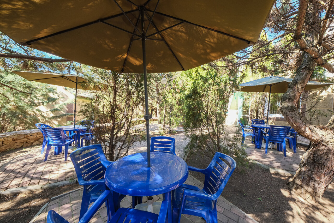 Из плюсов красивая зеленая территория отеля, близость к песчаному пляжу Нахимовец. Из минусов старые номера, плохая уборка, местами грязь в номерах. Цены в столовой и на пляже, качество и безопасность приготовляемой пищи.