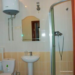В номере с собственным санузлом, туалет, раковина, душевая кабина, халат, фен, набор полотенец, шампунь, гель для душа, мыло, зубной набор. Wi-Fi, телефон, ЖК-телевизор, стол, стул, шкаф, прикроватная тумбочка, зеркало
