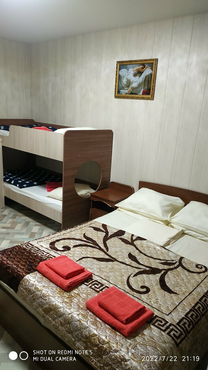 Невероятно приятное место. И этим отзывом ещё раз хочу поблагодарить Людмилу Ивановну и Николая Васильевича! Отдыхали в июне-июле 2023. Я нашла это место случайно, проходя с детьми мимо по обычному маршруту, но очень рада, что позвонила и что был свободен номер. Номеров не много, двор закрытый, зелёный, тихий. До пляжа Учкуевка — и до центральной части, и до дикой — минут 7 ходьбы, вернее просто спуска. Можно идти и через сосны, и через зелёную территорию ближнего пансионата. В номере телевизор, удобные кровати, прекрасный санузел. Во дворе просторная кухня летняя и беседка небольшая, уютная. Рядом и столовые, и магазины, и парк отдыха для взрослых и детей. Моя горячая рекомендация!