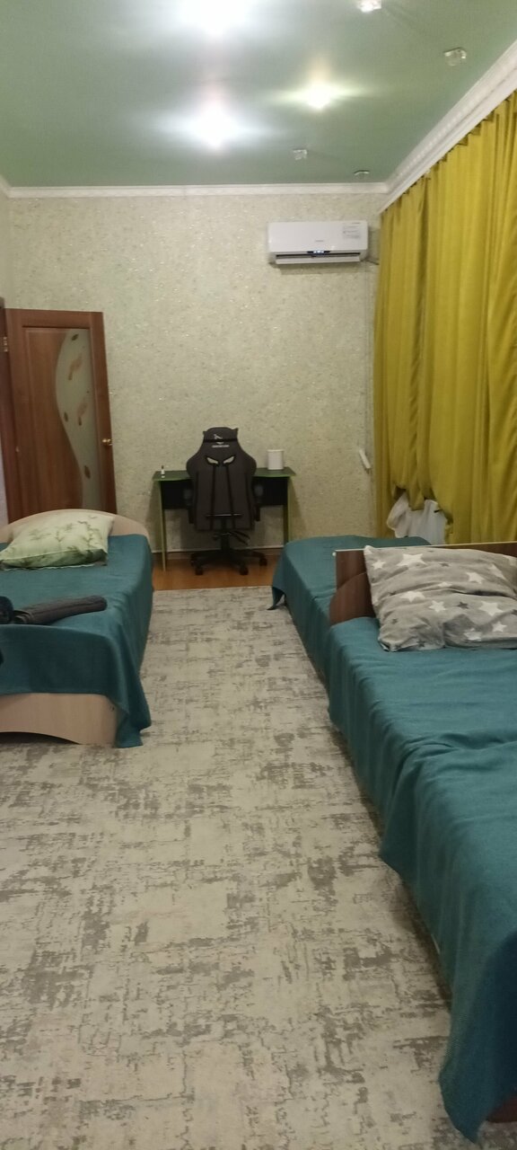 Постельное белье хорошее. Кондей справляется. В комнатах чисто. Хозяйка доброжелатеоьная, угощала персиками, чувствуется, что хозяйка заинтересована в гостях. В комнате стоит ароматизатор, очень приятно пахнет. Четверку поставили только из-за общей кухн: пол чистый, но разделочная доска требует замены, плита чистки, посуды маловато. Но ещё раз отмечу, видно что хозяйка работает над улучшением , поэтому желаю ей успеха!