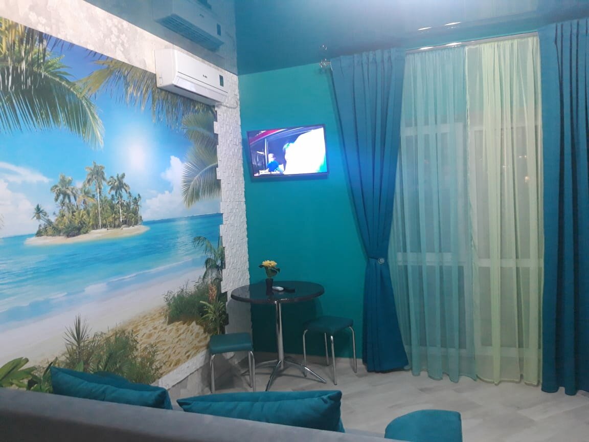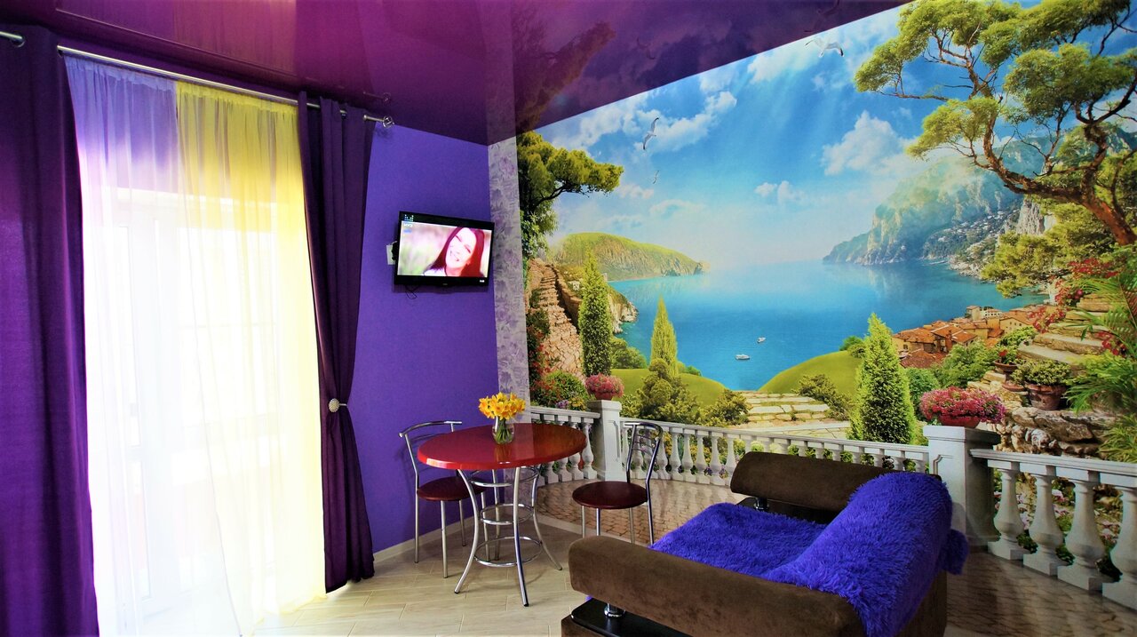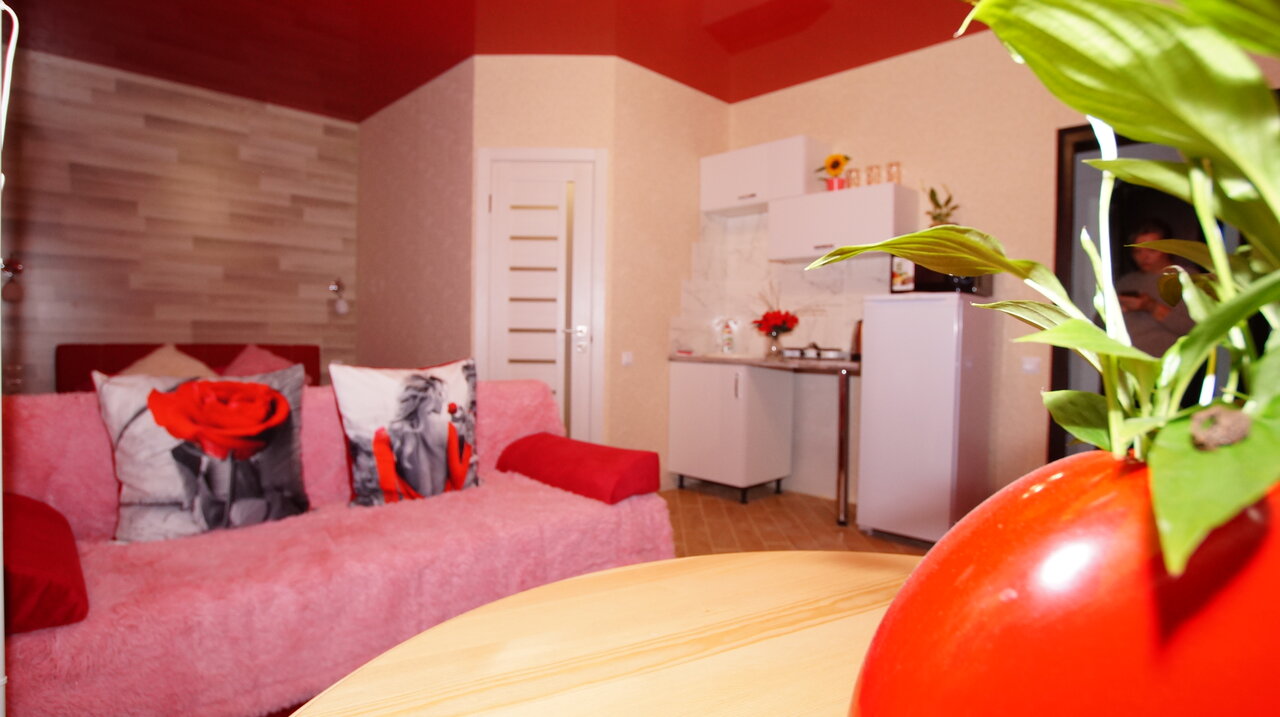 Гостиница расположена в тихом месте. Уютный номер, возможность приготовить еду. В номере имеется холодильник, кондиционер, микроволновка, телевизор, балкон, душ, туалет, посуда, необходимая мебель, несколько спальных мест (кровать, диван, кресло)