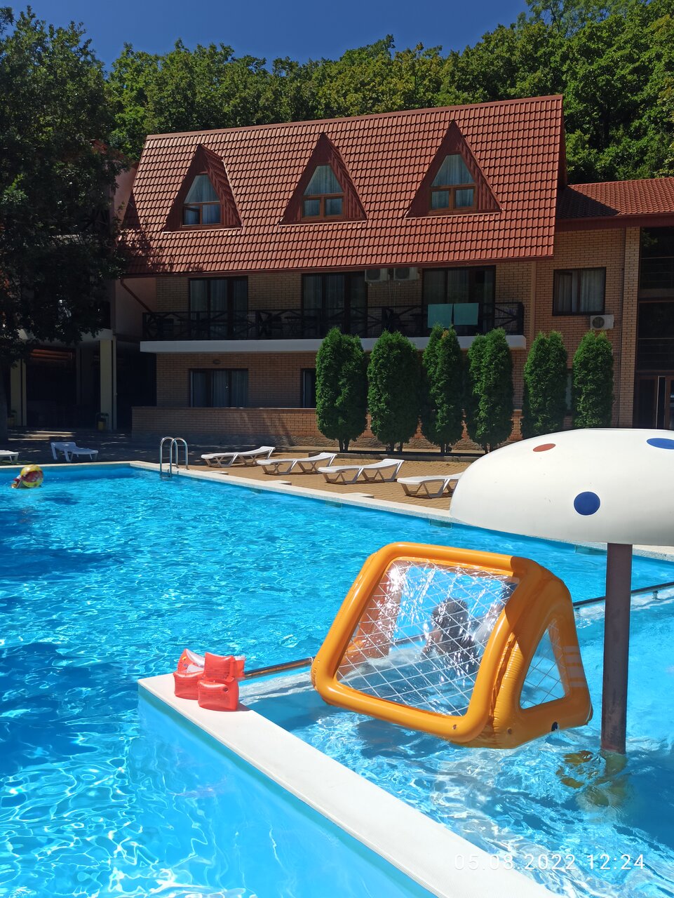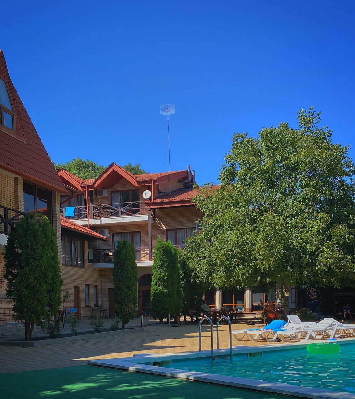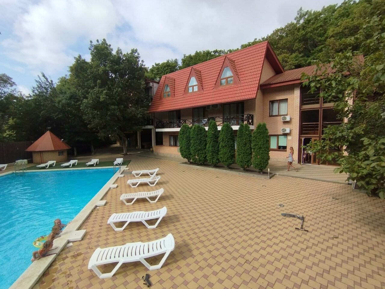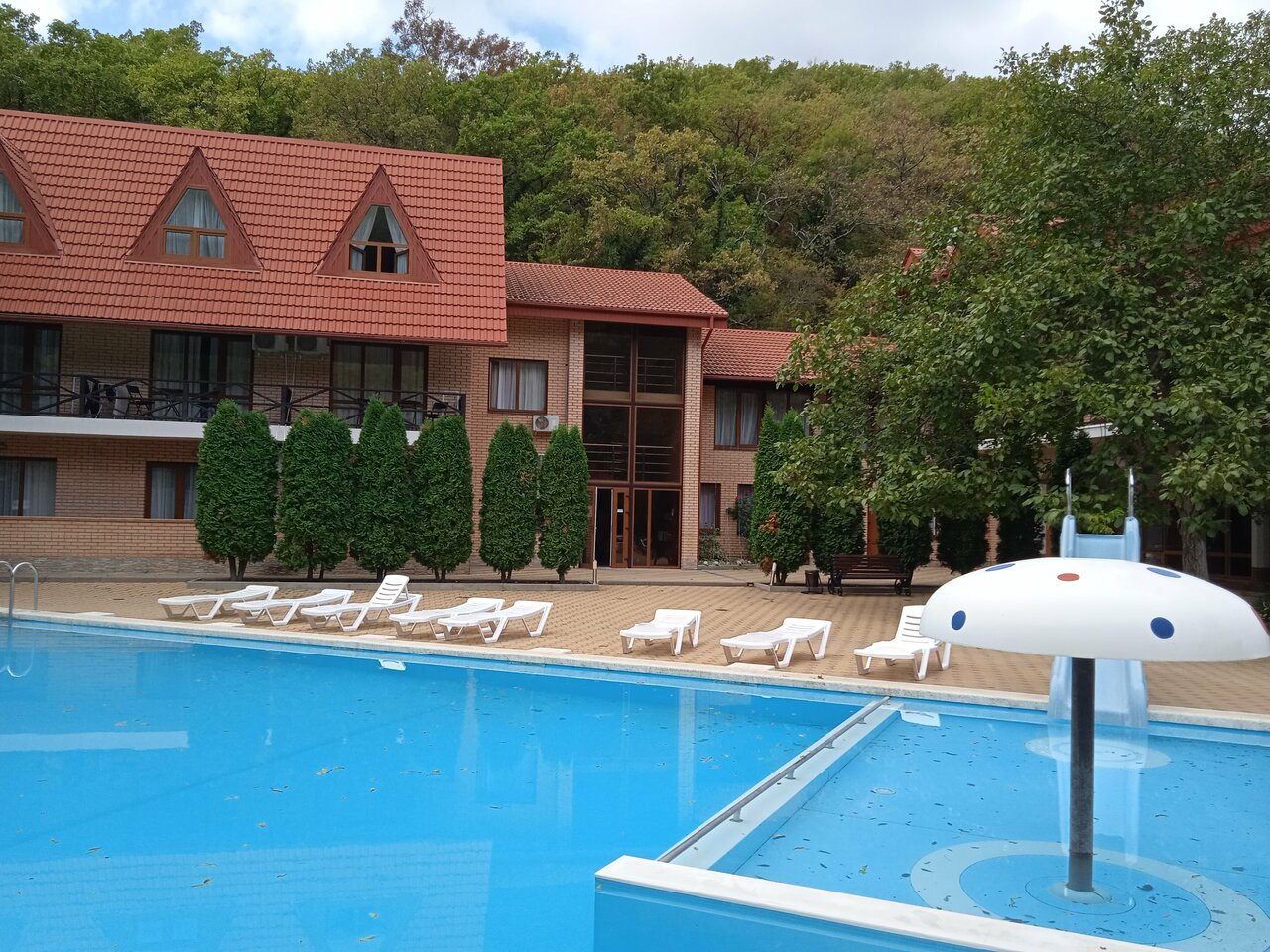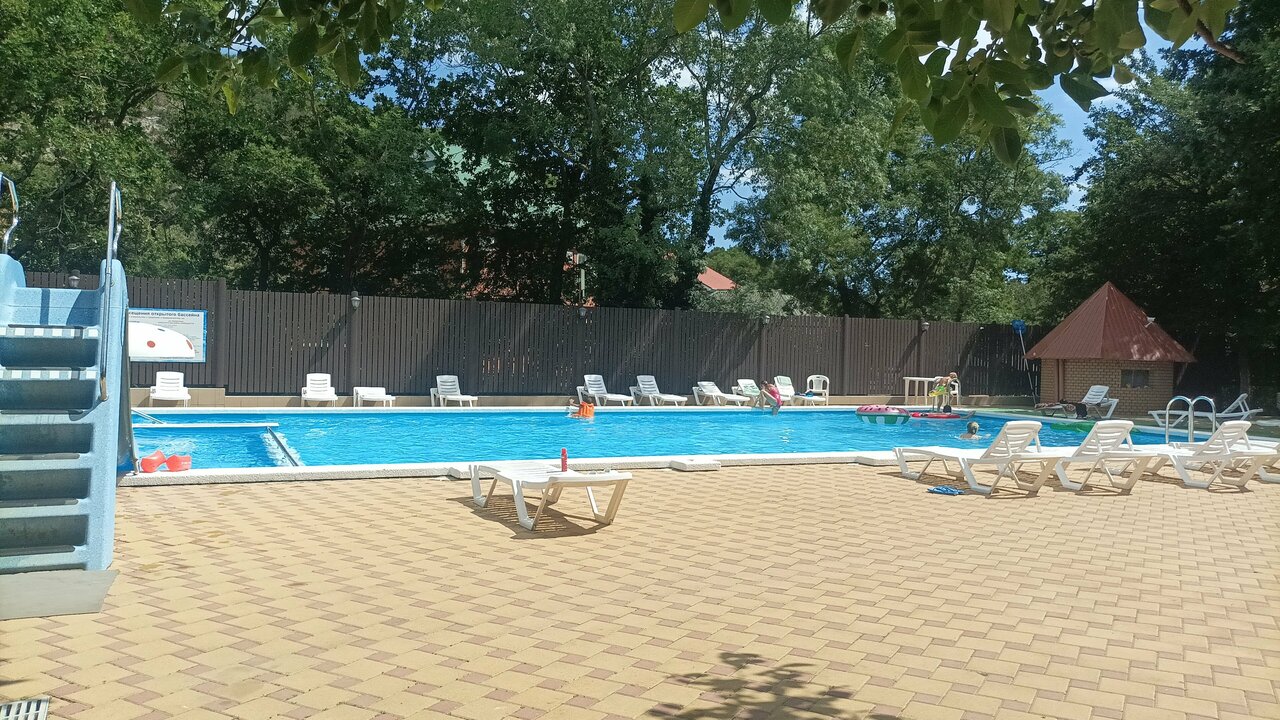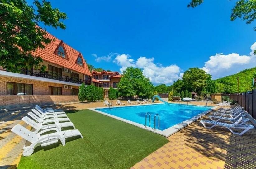 Чудесное место комфортно, чисто, уютно. Среди леса , чистый воздух. Бассейн просто бомба. Чистый , теплый , красивый и удобный. Даже с маленькими детьми. Хорошие комнаты и цена радует. Будем ездить туда ещё единственный минус это дорога до этого отеля. Без своей машины немного будет трудновато, но если вам никуда ездить не надо… Например в город , то есть транспорт, который отвозит до моря и забирает. есть своя столовая , а эт удобно не тратить лишние деньги вовремя прогулок в городе. Есть баня, шашлычный двор, бильярдная , игровая для детей
