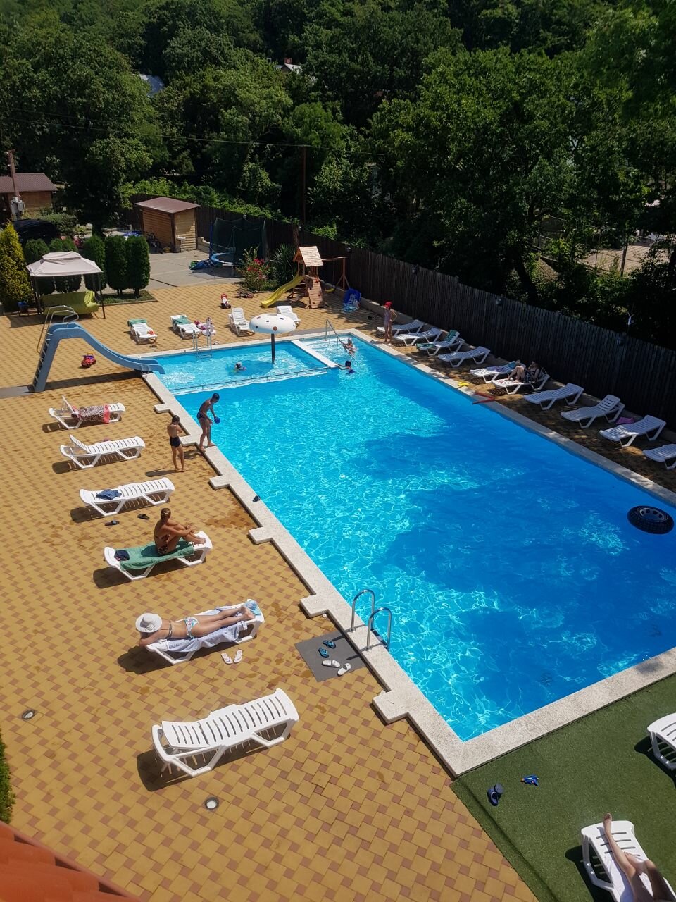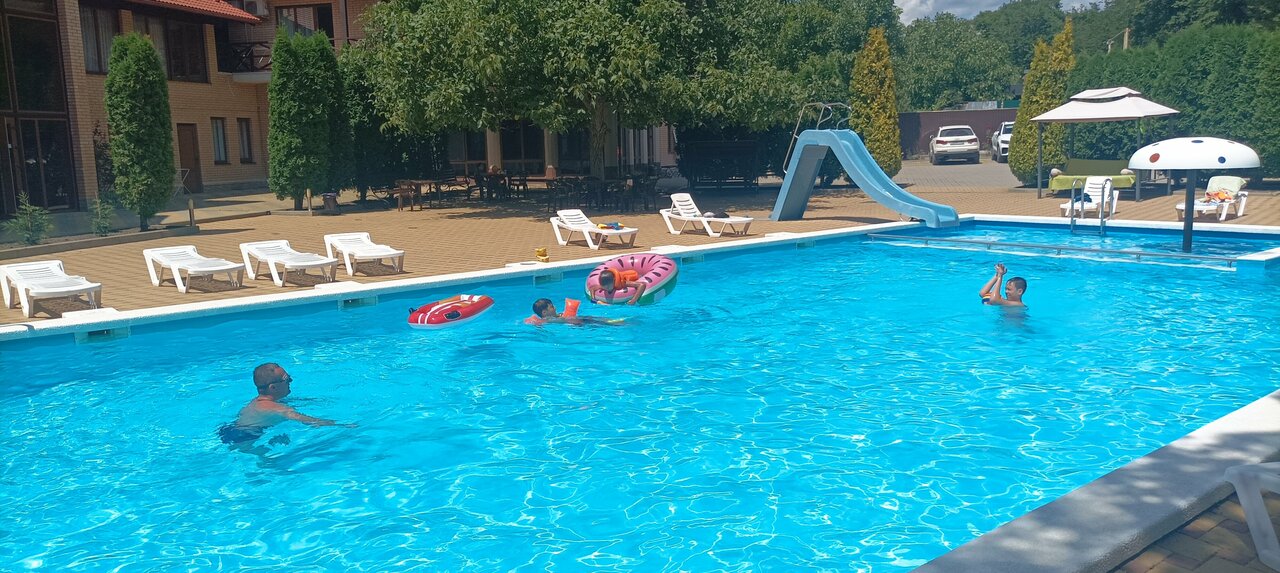 Прекрасное место для отдыха с детьми. Бассейн, батут, детская комната. Огромная территория много зелени. Чисто. Номера просторные новые.