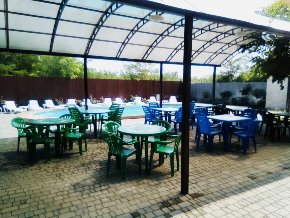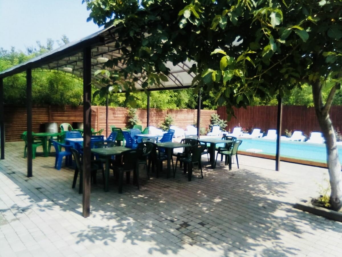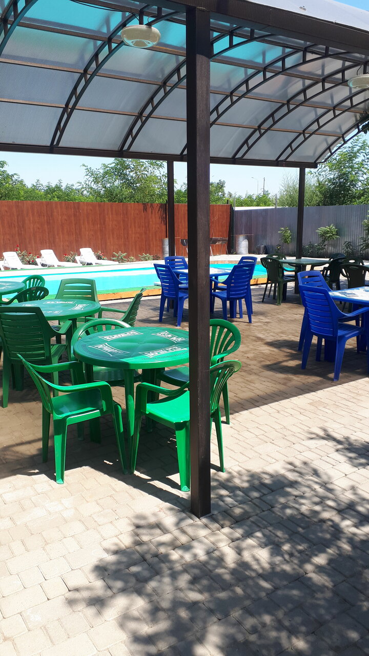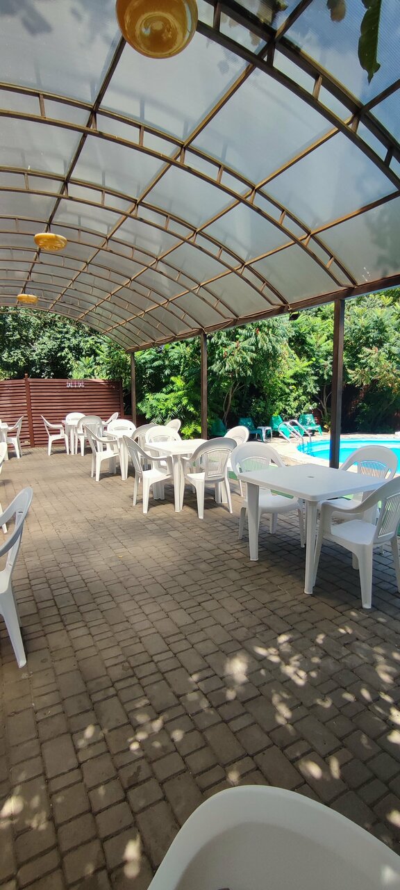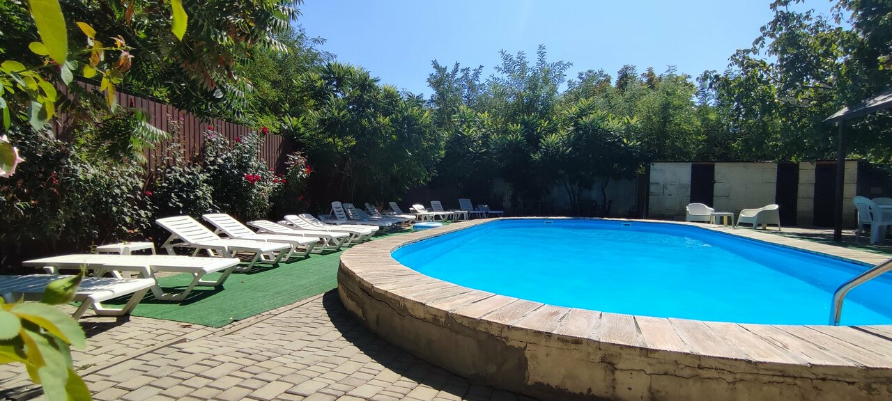 Хорошее, тихое место для отдыха. Чистый бассейн, оборудованные зоны( для шашлыка, отдыха). Шезлонги вдоль бассейна, цветы, деревья. Хорошего отдыха!!!