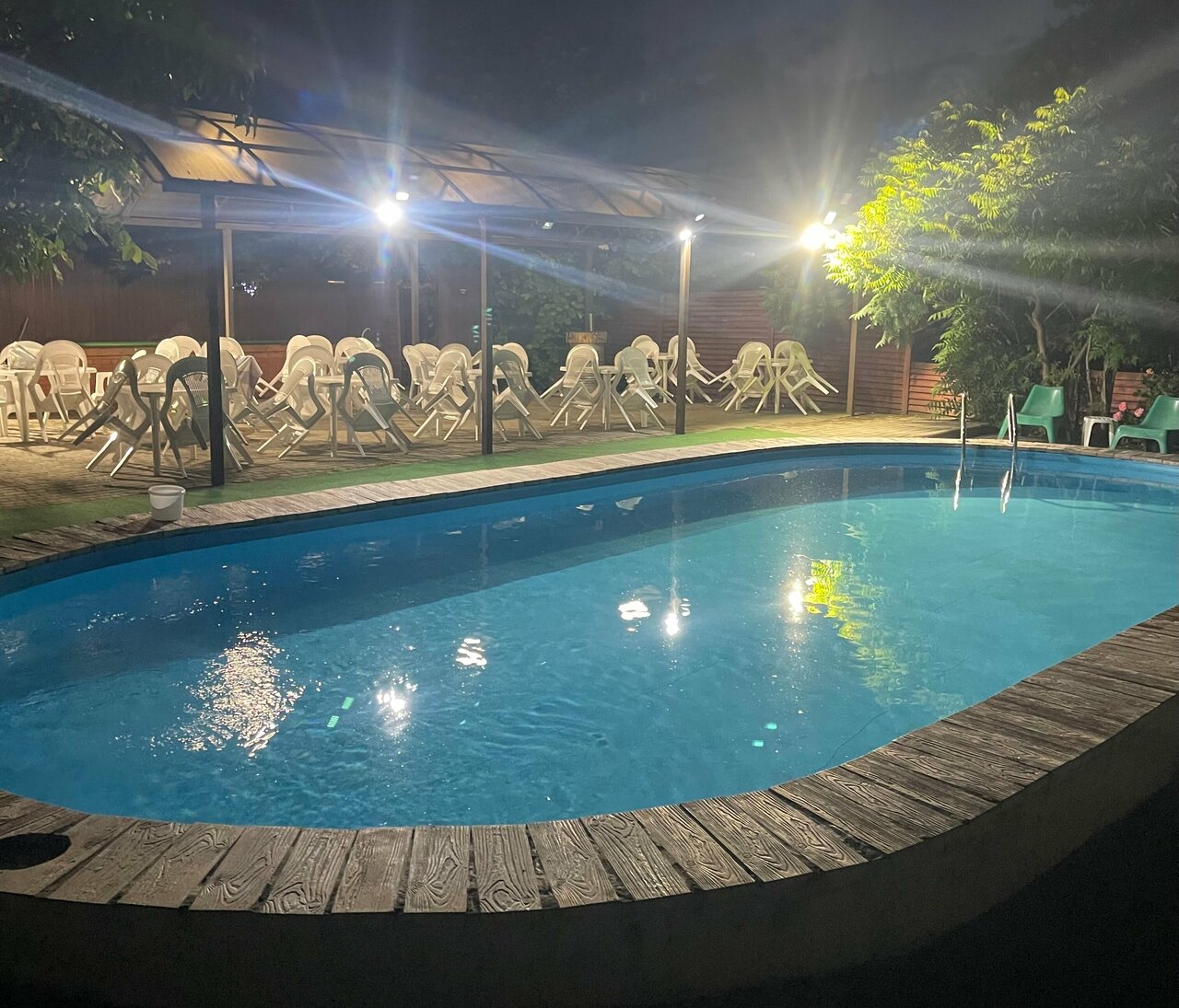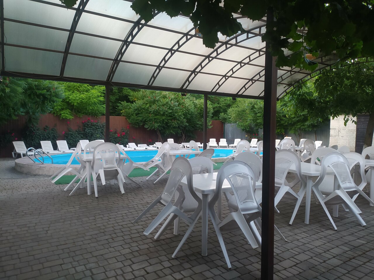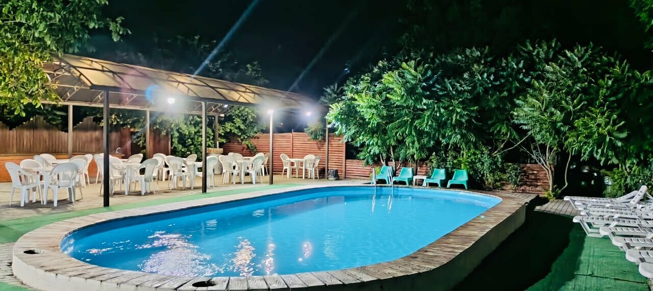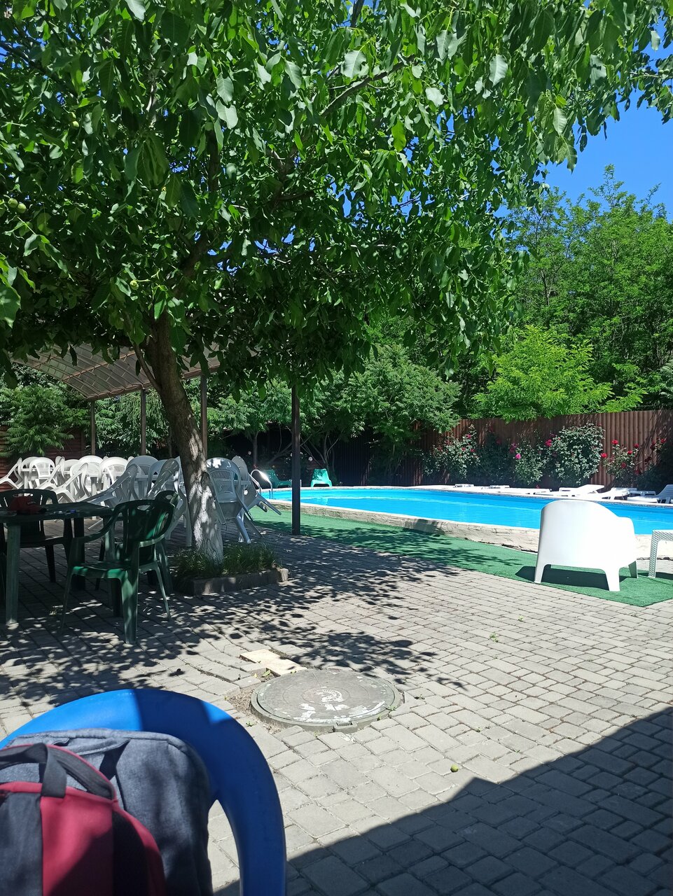 Хорошее, тихое место для отдыха. Чистый бассейн, оборудованные зоны( для шашлыка, отдыха). Шезлонги вдоль бассейна, цветы, деревья. Хорошего отдыха!!!