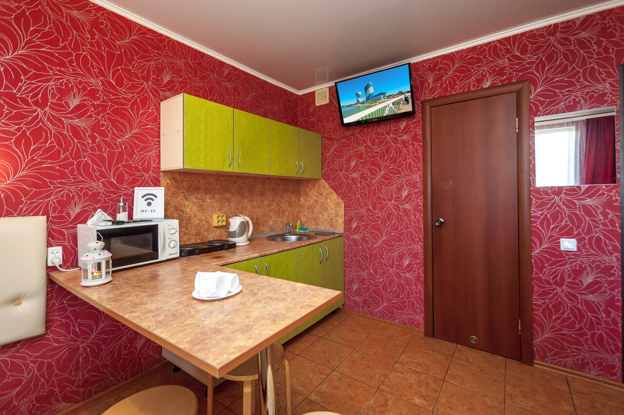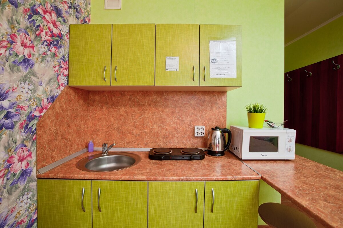 - Наличие кухонной техники (плита, холодильник, микроволновка, чайник).