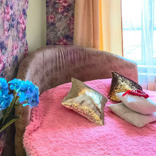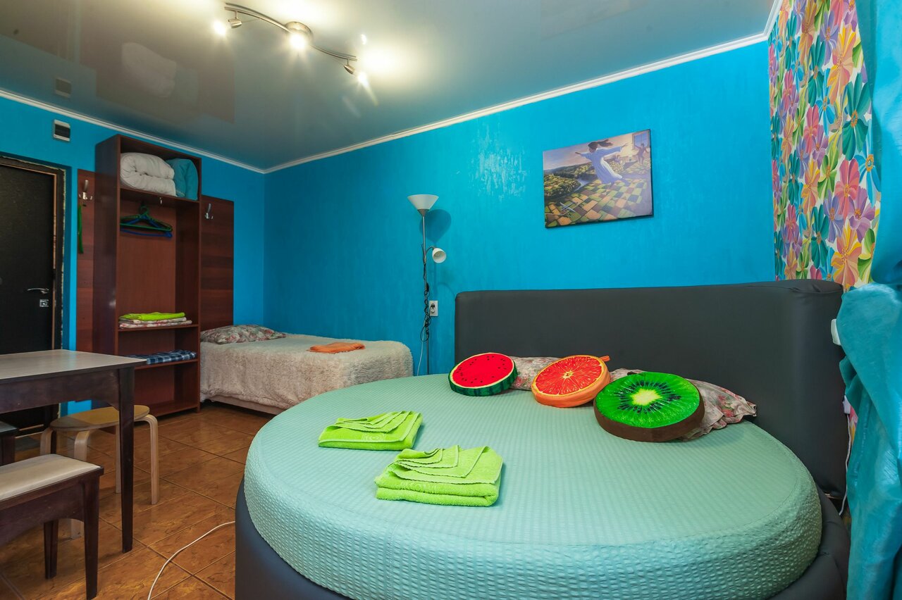 - БИРЮЗА Романтичный номер для влюбленных с большой КРУГЛОЙ КРОВАТЬЮ! комплимент от отеля гарантирован. Звоните! 350₽