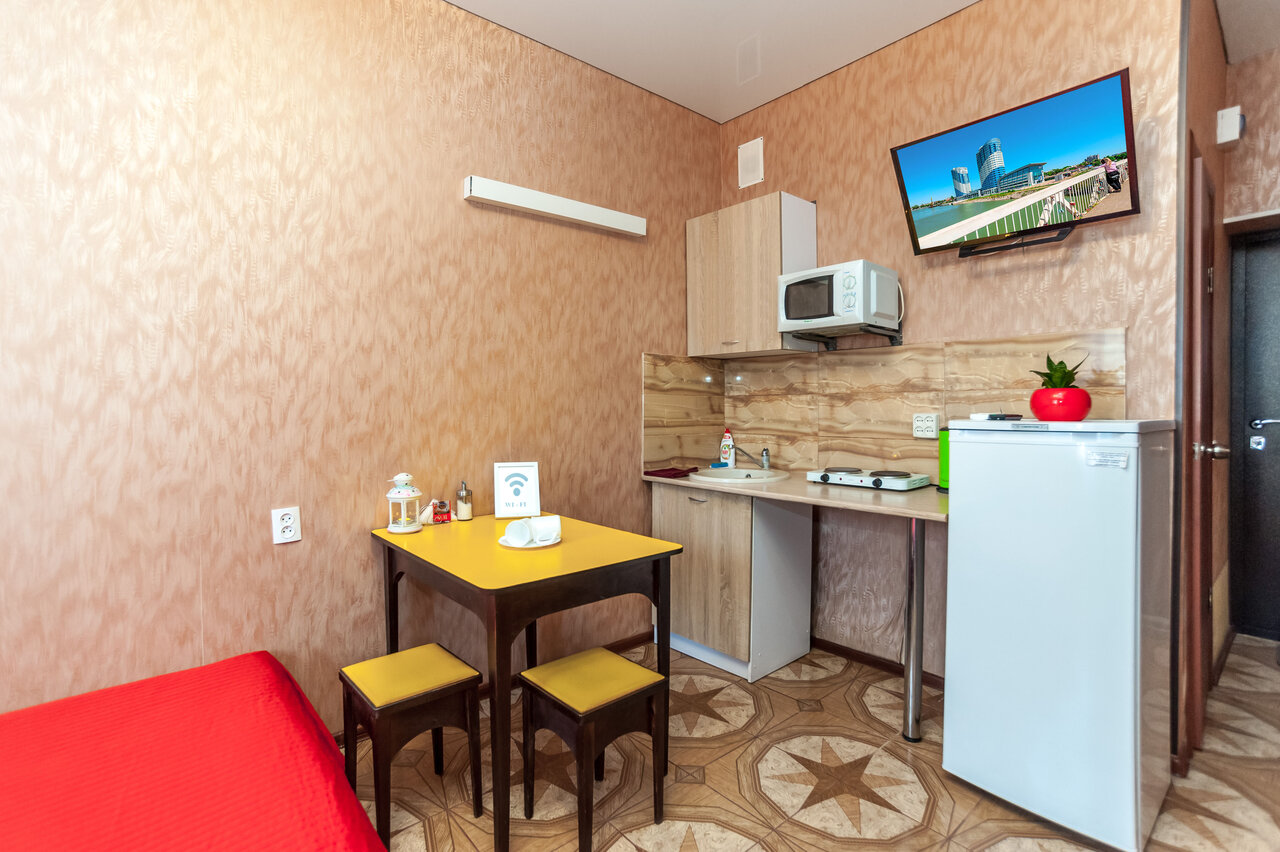 Гостиница соответствует представленным требованиям. Очень вежливый персонал, отзывчивый, всегда окажут помощь в любом вопросе. Уборка в номерах каждый день, всё чисто и опрятно, смена белья происходит своевременно. Рядом с гостиницей имеется парковка (оснащена видеонаблюдением), проблем с тем где оставить свой автомобиль не возникнет. По удобствам: холодная, горячая вода есть, туалет в номере, душ. Также в номере имеется плита (есть возможность приготовить покушать), холодильник, телевизор и микроволновая печь. Также есть кондиционер 🙂 . Рядом с гостиницей, в пределах 10-ти минут ТРЦ ‘Красная площадь’, ТЦ ‘Метро’.
