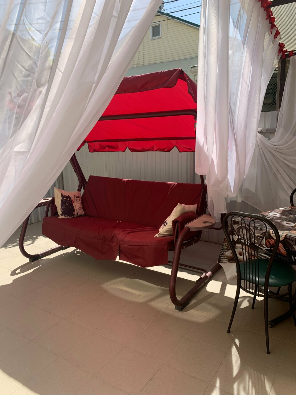 - Уютная общая зона отдыха (диван-качели, мягкий уголок).
