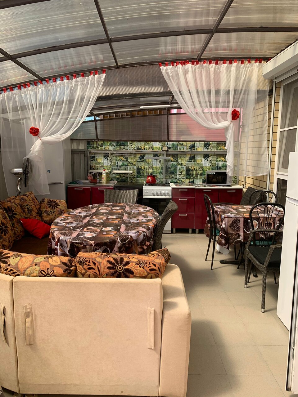 Отличный гостевой дом. Есть все нужное для комфортного отдыха, если не в номере, то на общей кухне 🙂 Номер брали -х местный, тесноват. Но зато в общей зоне отдыха есть диван — качели, мягкий уголок, столики, + своя парковка. До пляжа 10 минут, не торопясь.