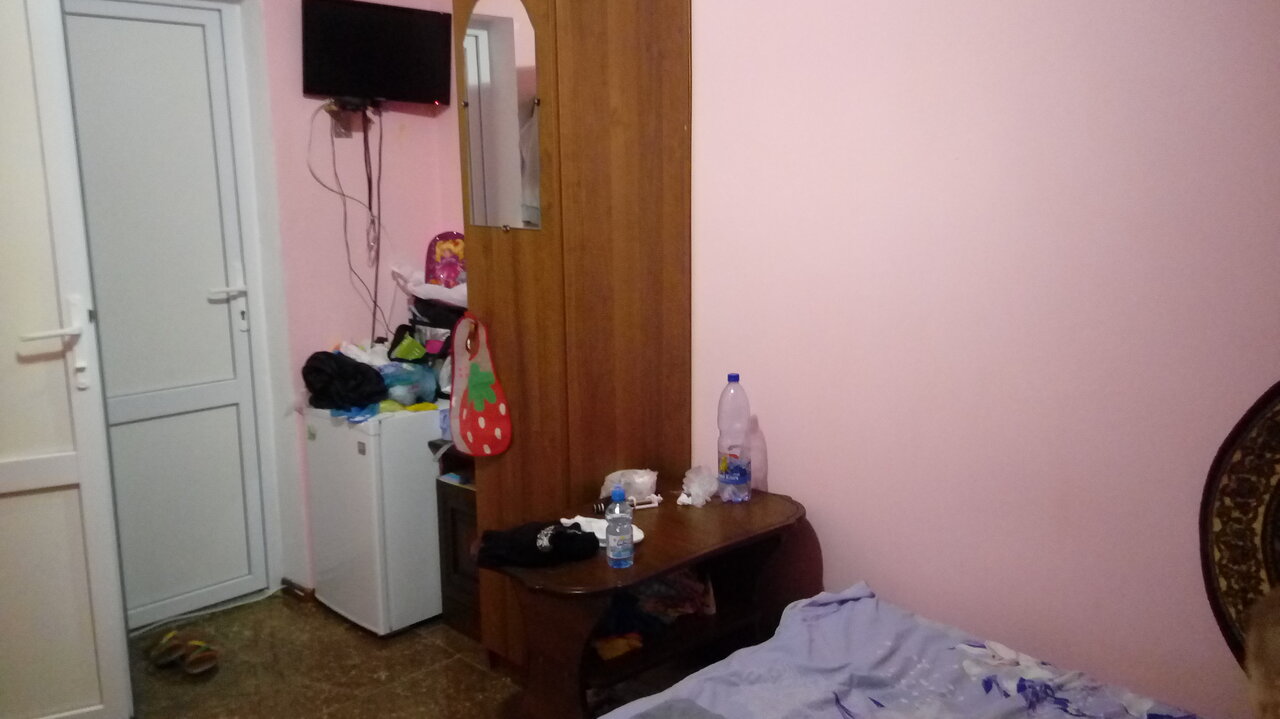 фото полностью не соответствуют реальности(песочницы нет,батут порван)детская площадка на несколько домов ,прибегают дети отовсюду. в номере при заезде тек смеситель,был поменян спустя неделю после того как затопило первый этаж,стена перегородка между ванной и комнатой протекала,вся в разводах.в номерах грязновато,весь мусор под кроватью. повесели у кроватей коврики.они прям ужасные…!можно было что то по-лучше придумать. маленькие полотенца, еле хватало на детей, не говоря о взрослом. моргающий телевизор за рассыпающимся шкафом. единственный плюс относительная близость к морю! можно найти дешевле и намного чище жилье!