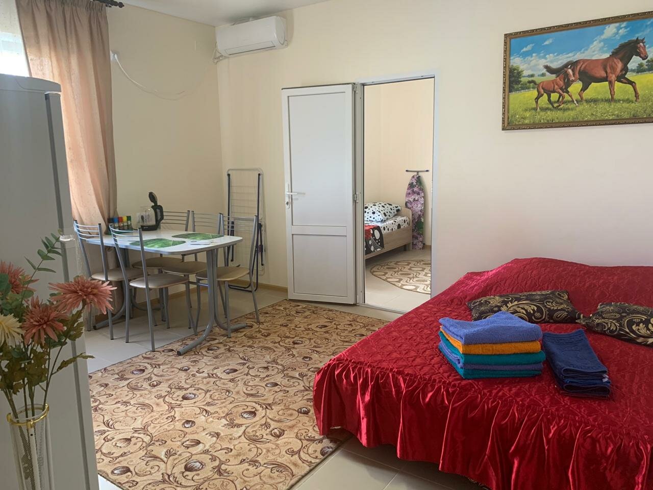 Отдыхали в гостявом доме, очень тихое хорошее место, хорошие большие номера, со всем необходимым, чистота запрелельная, в номере вплоть до фери и мочалки .До моря пять минут, рядом множество столовых , продуктовых магазинов, рынок, а так же есть не долеко магнит. На улице рядом с гостиничным домом есть мангальная зона, игровая для детей, а так же бесетка и столики.Все очень здорово, тихо и срокойно.