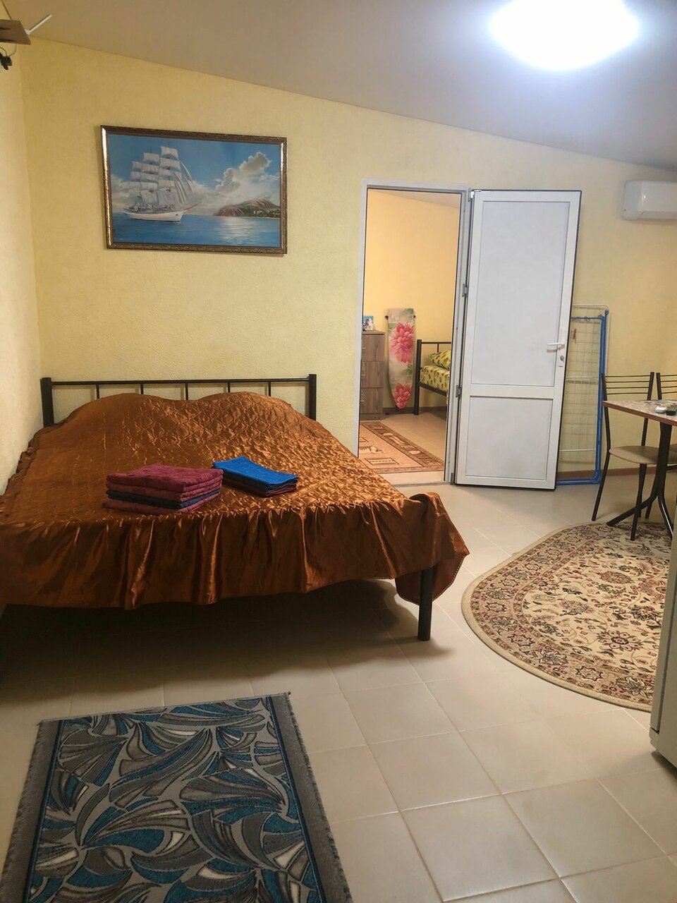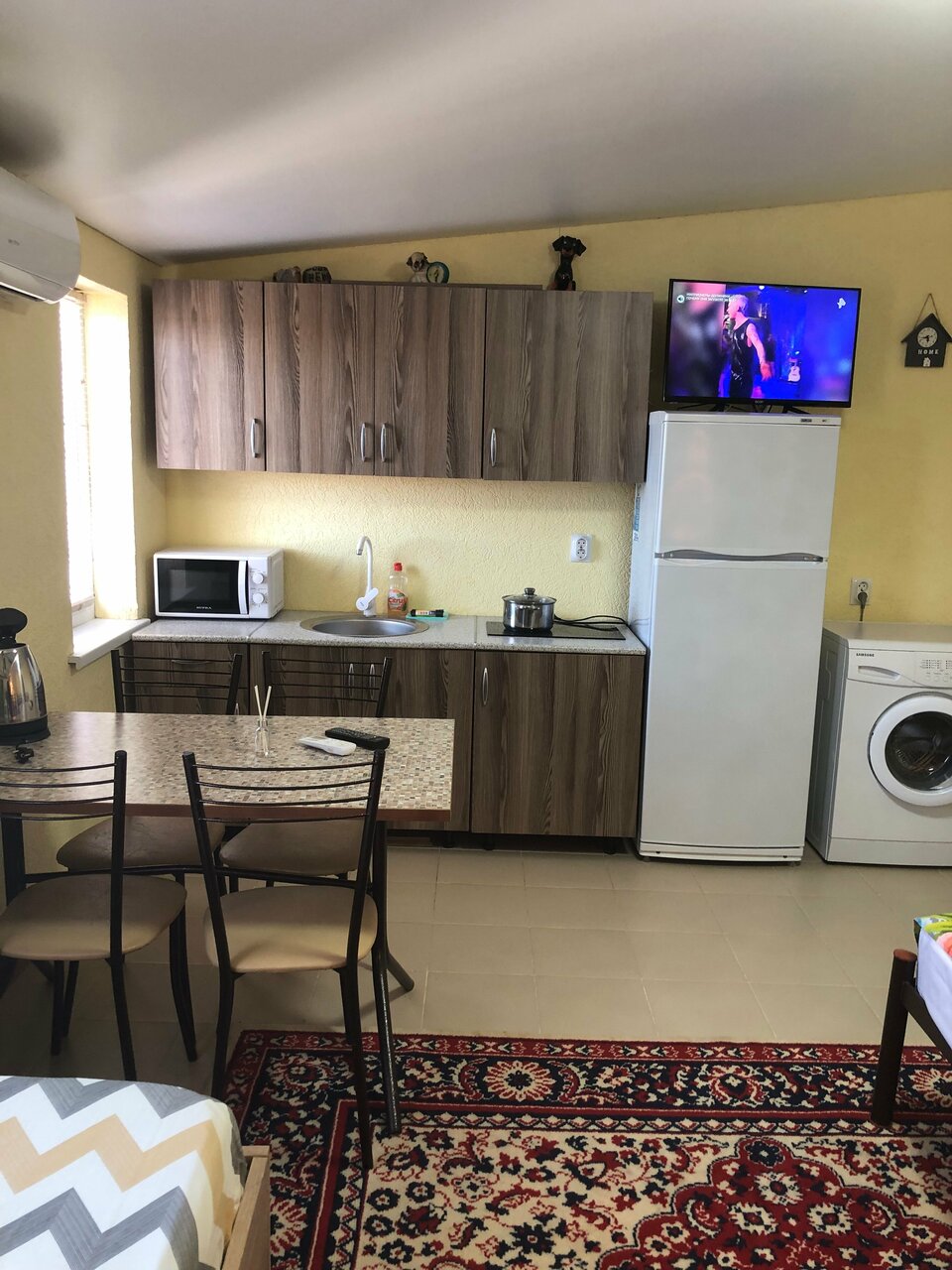Отличная гостиница, в номерах есть полноценный холодильник, плита, посуда, душ и туалет в номере, отзывчивые хозяева. На улице есть возможность самостоятельно на мангале приготовить любое блюдо. До моря прогулочным шагом 5 минут, расстояние 470 метра. Море тёплое, берег песчаный.